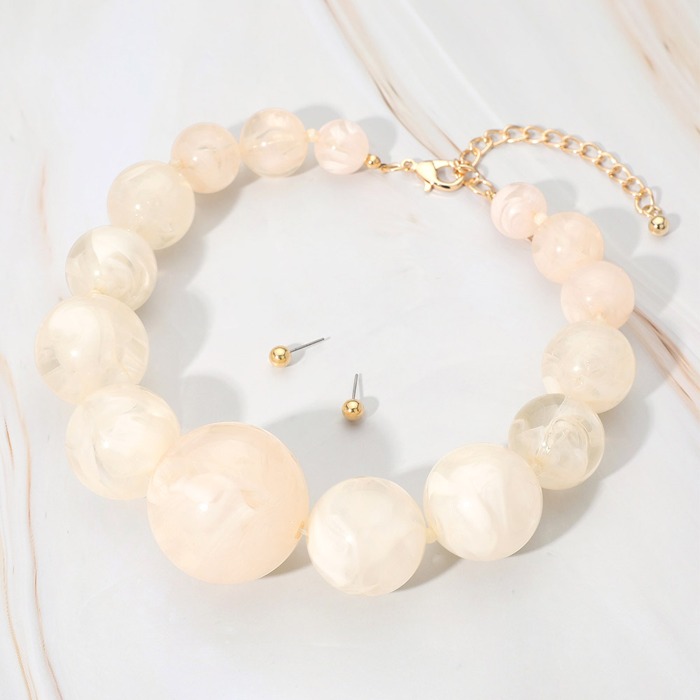 Bold Marbled Resin Ball Beaded Statement Necklace