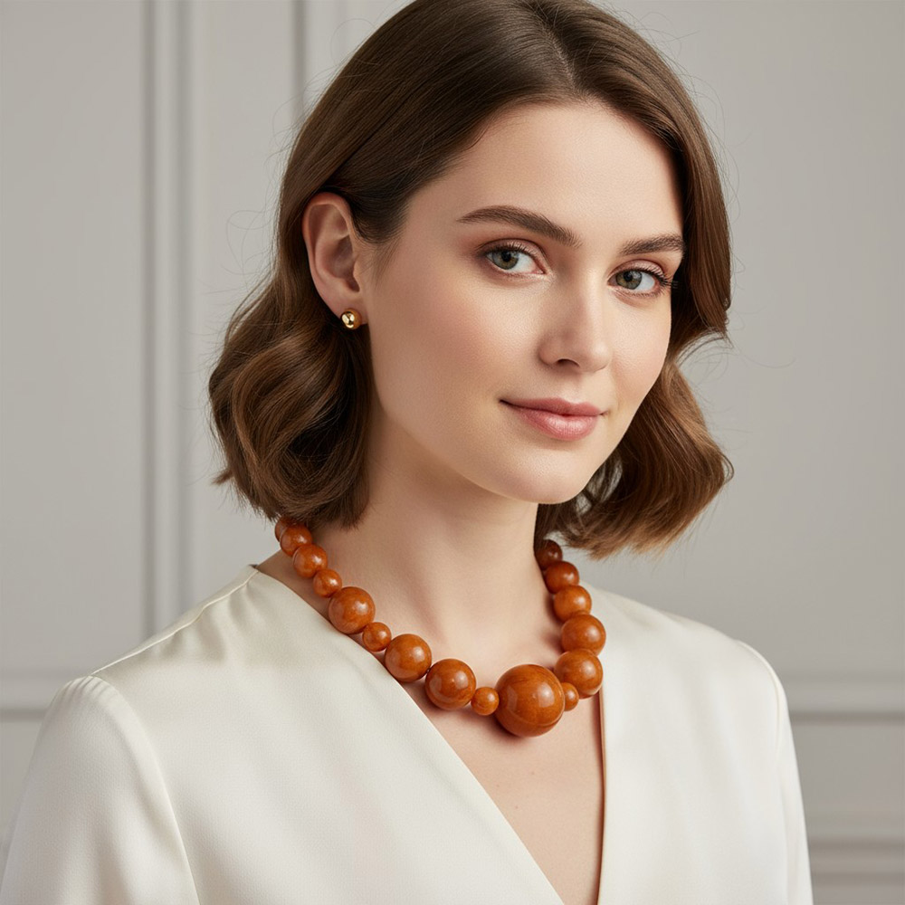 Details • Necklace Size : 17" + 4" L • Decor Size : 1.5" L • Earrings Size : 0.2" L • Enhance your outfit with this glossy round beaded necklace and matching stud earring set. The graduated bead design adds depth and balance, while the adjustable chain ensures a perfect fit. Ideal for creating a bold yet elegant statement that transitions effortlessly from day to night. • Lead and Nickel Compliant