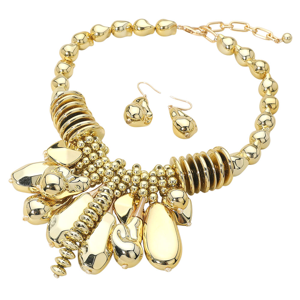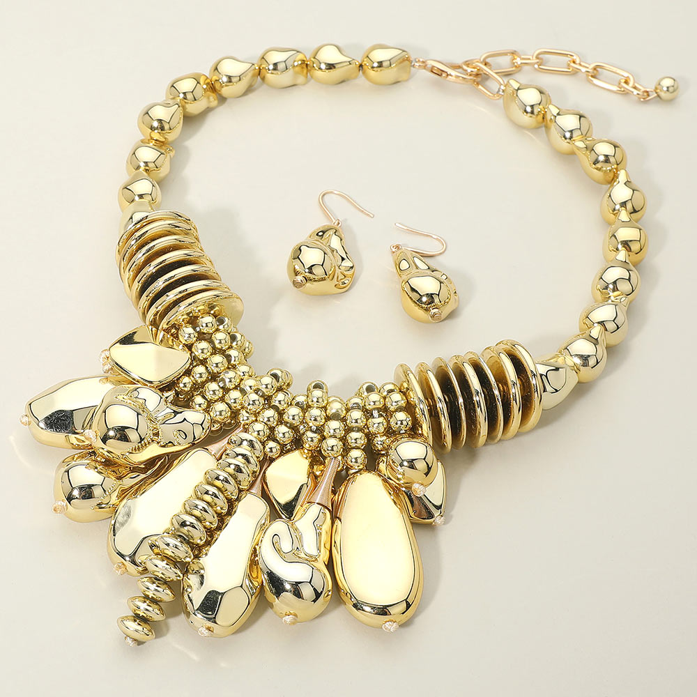 Details • Necklace Size : 17" + 3" L • Decor Size : 3.25" L • Earrings Size : 2.25" L • This statement charm necklace and matching earring set features layered beads and sculptural accents for a bold, fashion-forward look. Designed to elevate boutique collections, it offers strong visual impact, versatile styling options, and standout appeal for trend-driven outfits and modern statement jewelry displays. • Lead and Nickel Compliant