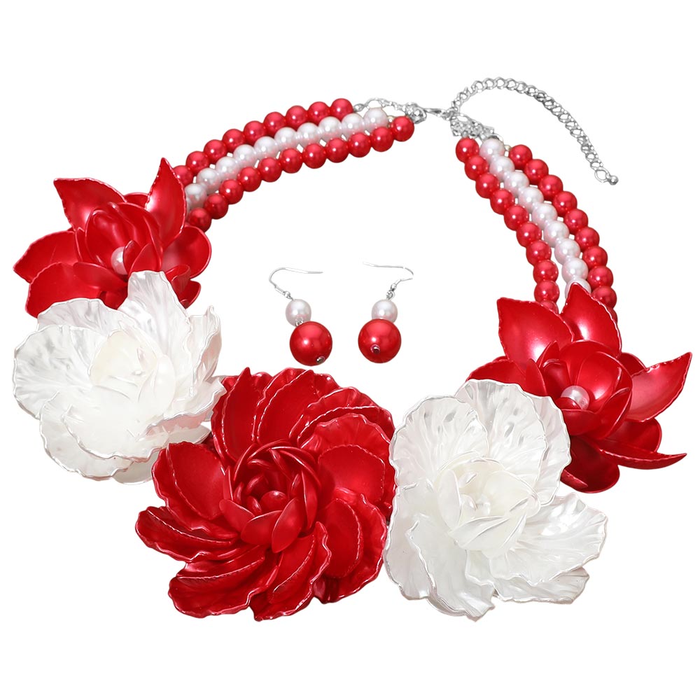 • An elegant statement necklace set featuring layered floral accents and coordinating earrings with an adjustable fit. Designed to elevate formal looks, weddings, parties, and special occasions, offering graceful style and standout detail for memorable outfits.