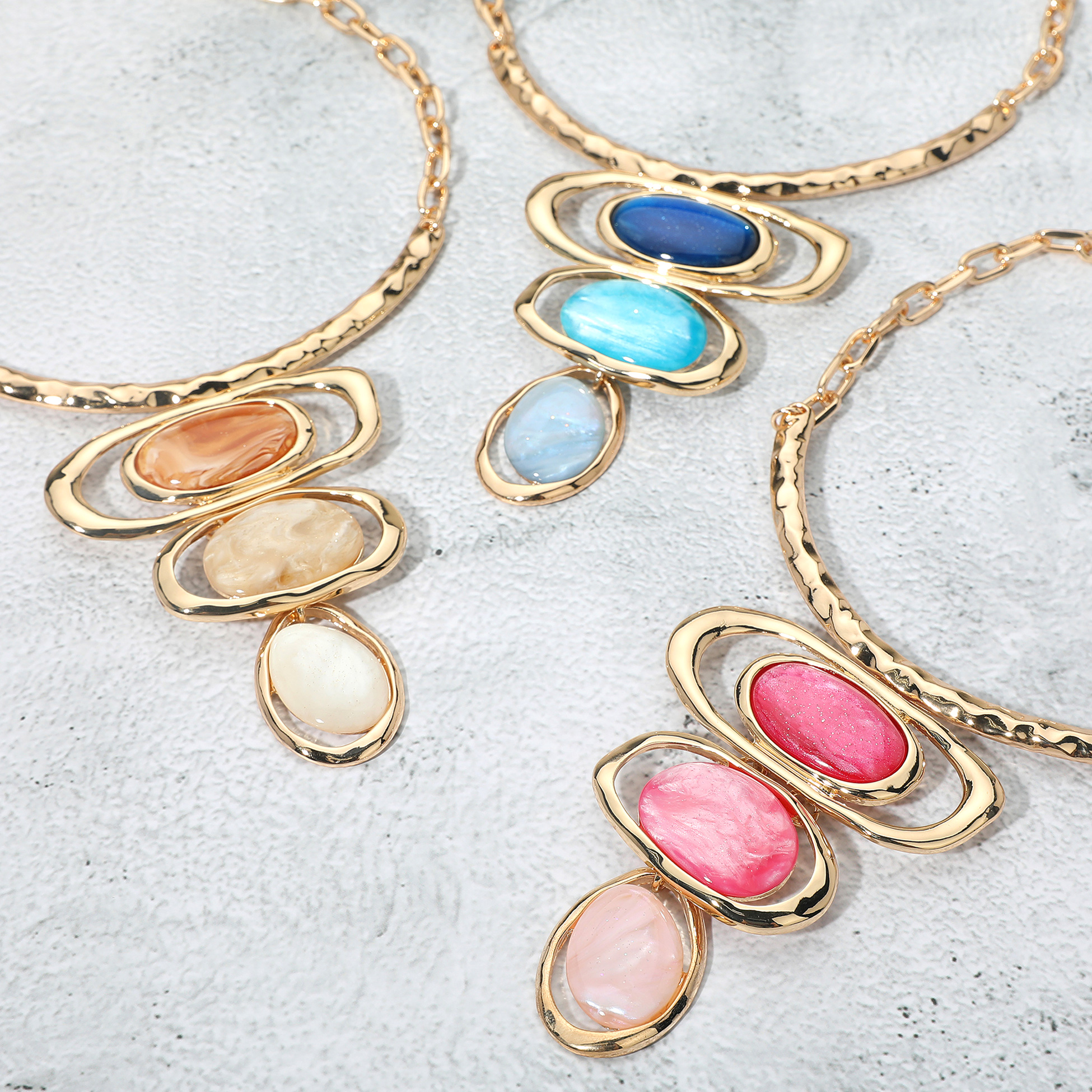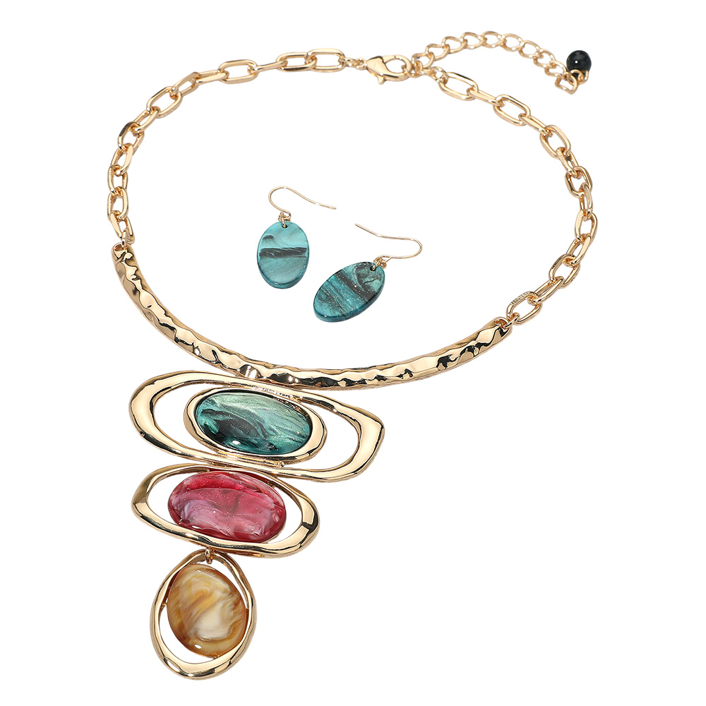 Details • Necklace Size : 17" + 4" L • Decor Size : 4" L • Earrings Size : 1.7" L • Make a statement with this bold necklace and earrings set featuring layered geometric pendants and matching drop earrings. The striking design enhances any outfit, perfect for parties, evenings, or special occasions. Add a modern artistic touch to your jewelry collection with this stunning set. • Lead and Nickel Compliant
