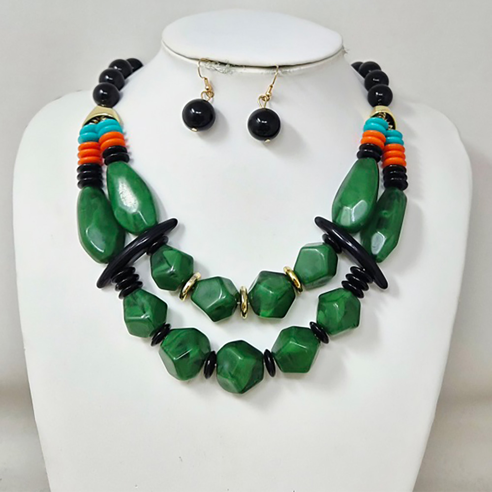 Bold Resin Pebble Beaded Layered Statement Necklace Bold Resin Pebble Beaded Layered Statement Necklace Bold Resin Pebble Beaded Layered Statement Necklace