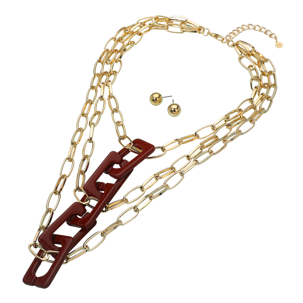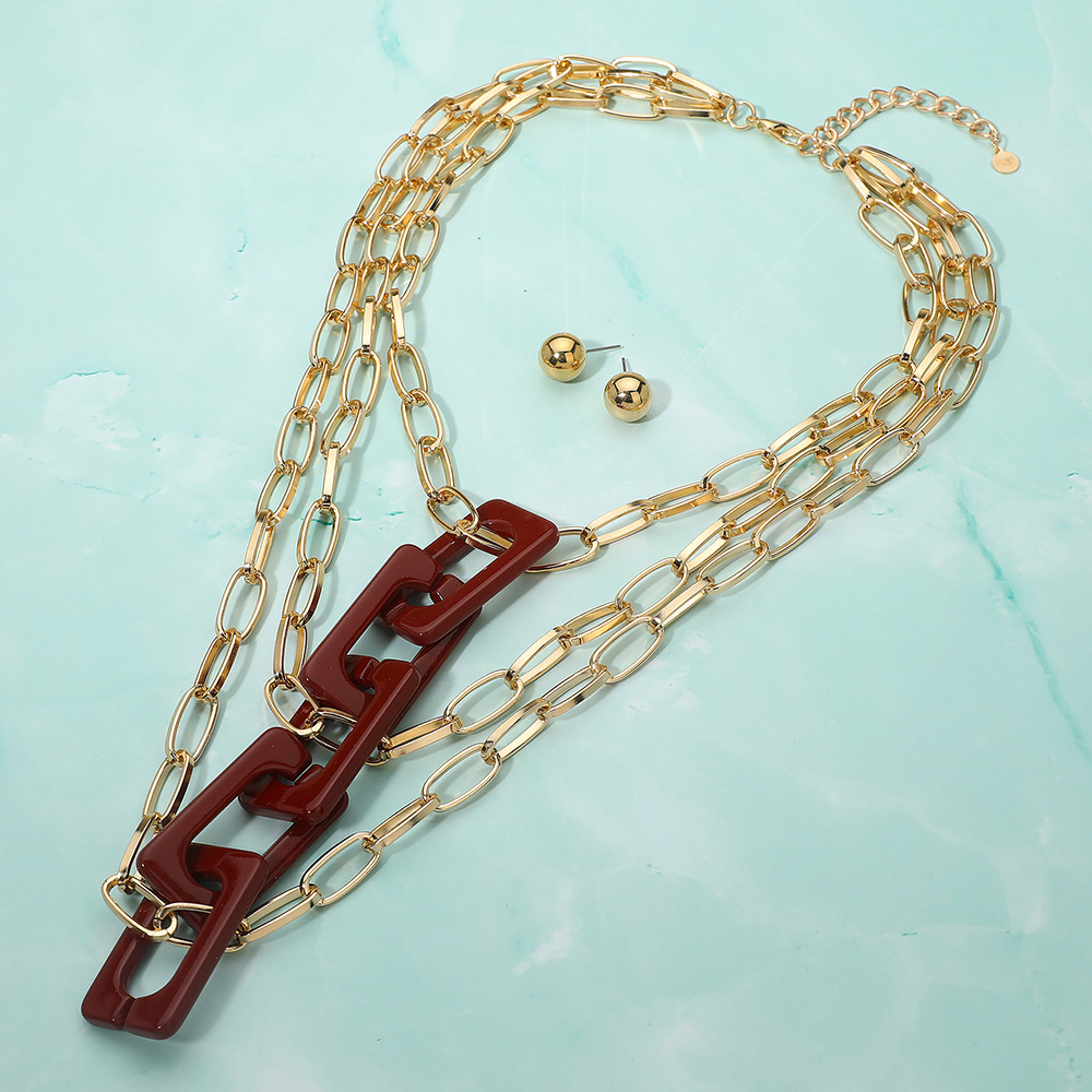 • Bold layered chain necklace designed with oversized links and paired with matching stud earrings for a polished finish. Perfect for making a statement, this versatile jewelry set complements casual and dressy looks, adding modern edge and sophistication to your accessory collection.