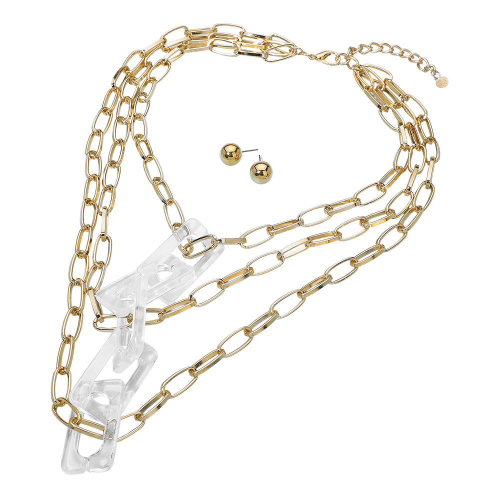 Bold Resin Square Chain Link Accent Paperclip Chin Layered Statement Necklace