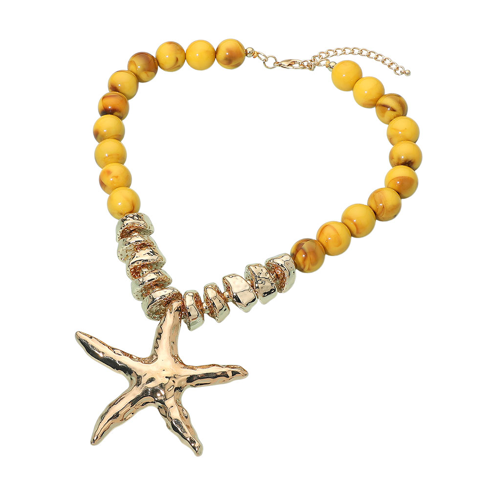 • Bold beaded necklace featuring a sculpted starfish pendant and textured spacer accents for a coastal-inspired statement look. Perfect for vacations, beach outings, summer events or adding playful ocean-themed charm to everyday outfits with eye-catching style.