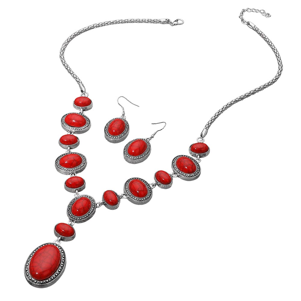 • Make a striking impression with this elegant jewelry set featuring an array of oval accents arranged in a cascading silhouette. Paired with matching drop earrings, this standout design brings a refined, vintage-inspired touch that instantly elevates evening outfits and special occasion style.