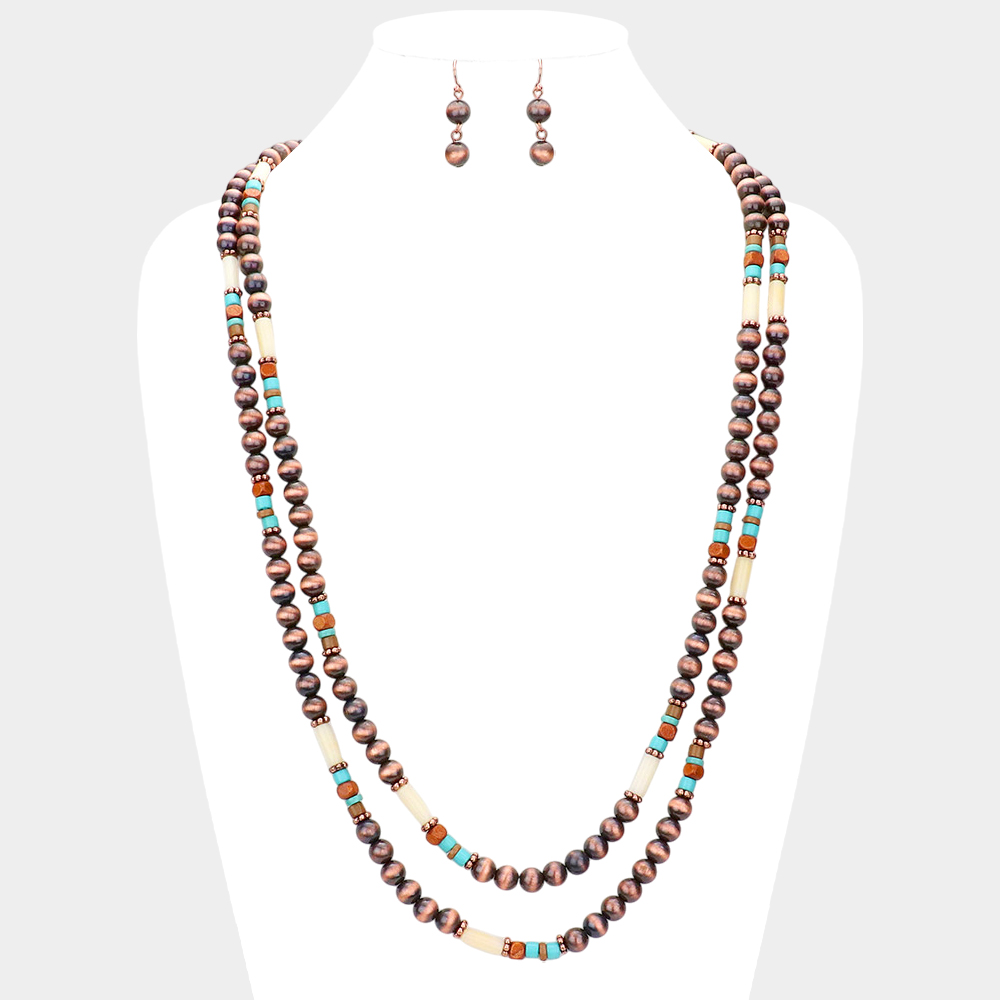 Wood Disc Plate Beaded Stretch Strand Bracelet