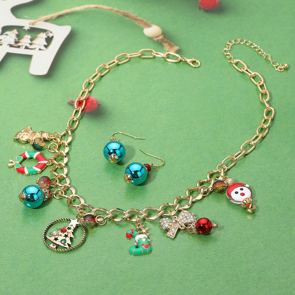 Details • Necklace Size : 18" + 3" L • Decor Size : 1.75" L • Earrings Size : 1.5" L • Playful holiday charm jewelry set featuring a statement necklace adorned with seasonal pendants and matching drop earrings. A cheerful and sparkling accessory perfect for holiday parties, gifting, and festive celebrations. • Lead and Nickel Compliant