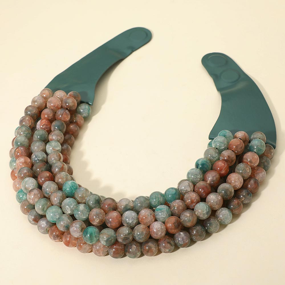 Marbled Faceted Ball Beaded Multi Layered Faux Leather Magnetic Necklace