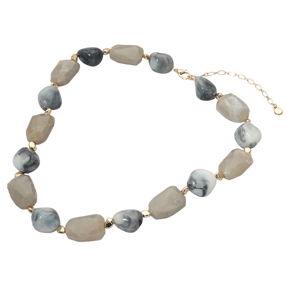 Details • Necklace Size : 16.5" + 3" L • Decor Size : 0.6" L • This station necklace features alternating faceted bead shapes linked with smooth spacers, creating balanced texture and soft movement along the neckline. Designed for everyday wear or easy layering, it fits casual to polished looks and works well for boutique collections, gift assortments, and trend-focused jewelry displays. • Lead and Nickel Compliant