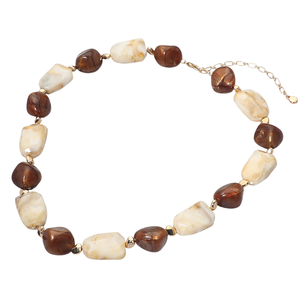 Details • Necklace Size : 16.5" + 3" L • Decor Size : 0.6" L • This station necklace features alternating faceted bead shapes linked with smooth spacers, creating balanced texture and soft movement along the neckline. Designed for everyday wear or easy layering, it fits casual to polished looks and works well for boutique collections, gift assortments, and trend-focused jewelry displays. • Lead and Nickel Compliant