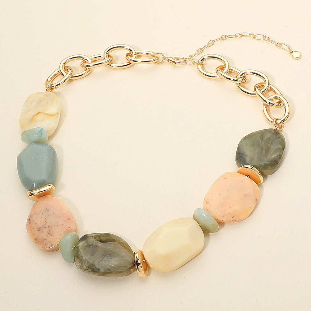 Chunky Marbled Resin Beaded Chain Link Statement Necklace