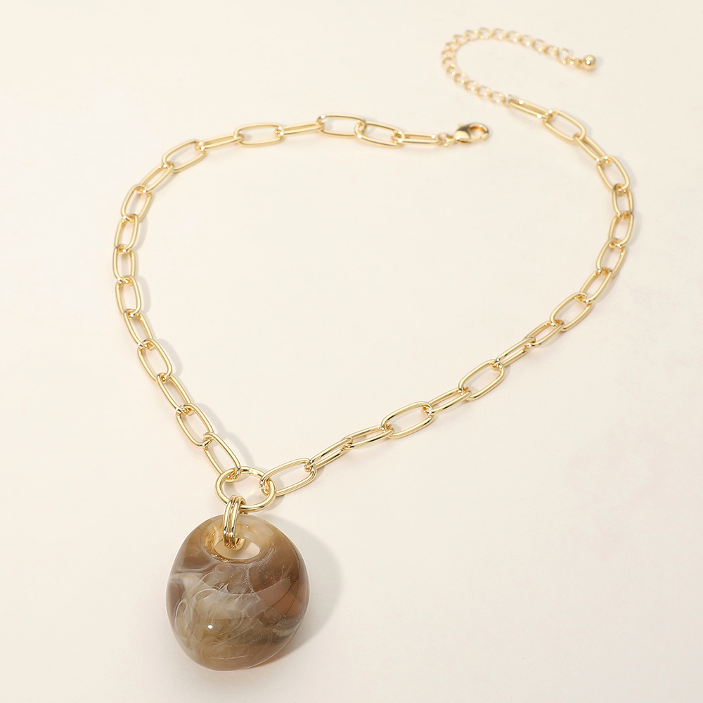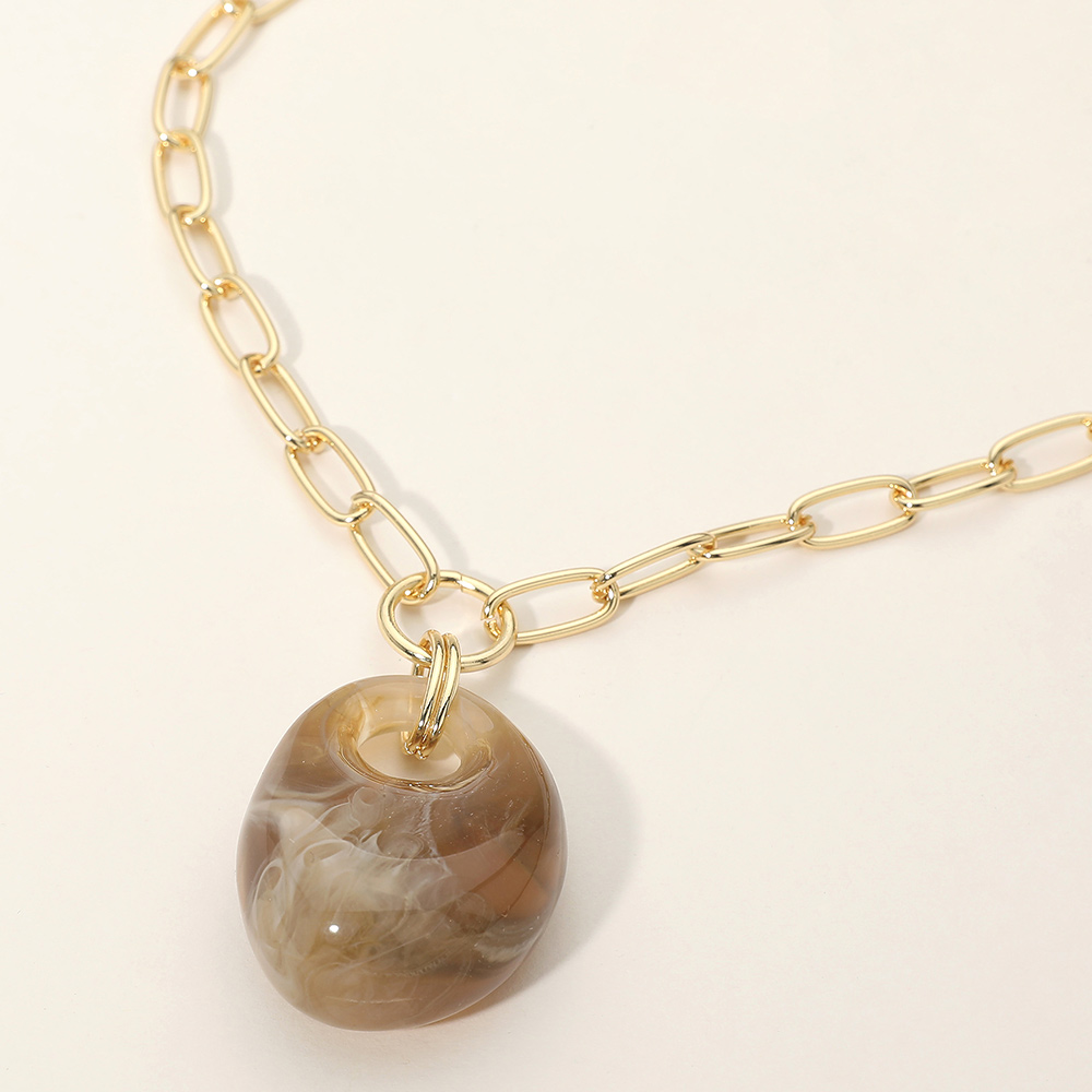 Chunky Marbled Resin Pendant Paperclip Chain Necklace