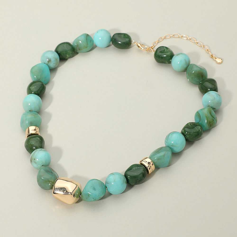 Chunky Metal Accent Resin Pebble Beaded Statement Necklace