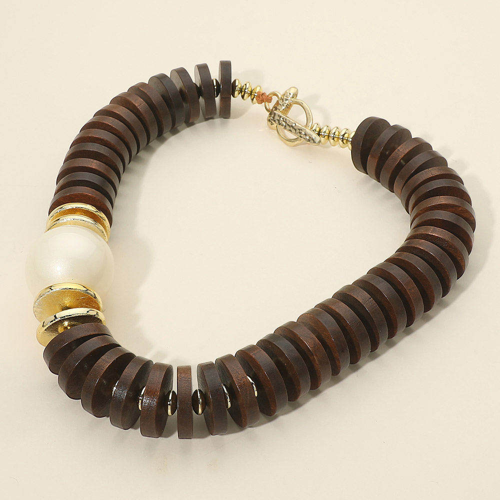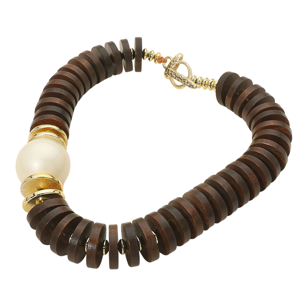 Chunky Pearl Accent Resin Disc Beaded Statement Necklace Chunky Pearl Accent Resin Disc Beaded Statement Necklace
