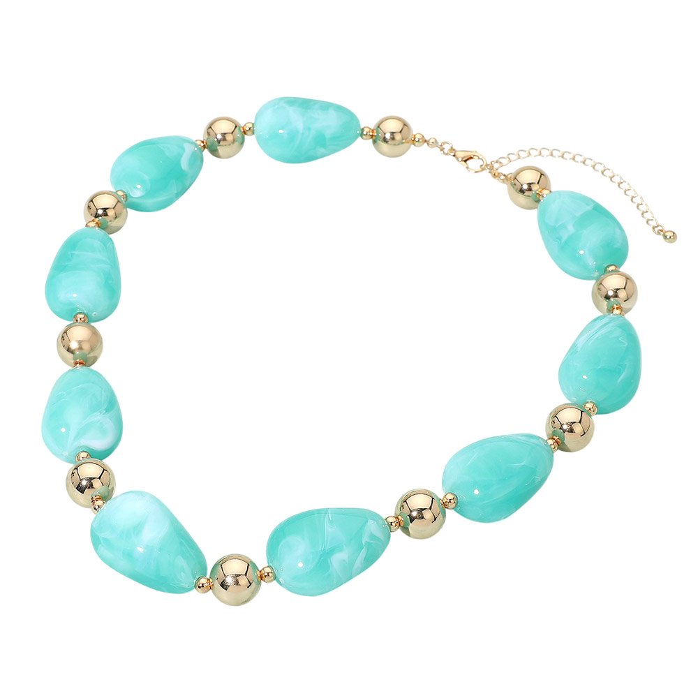 Details • Necklace Size : 18" + 3" L • Decor Size : 0.75" L • Eye-catching statement necklace designed with smooth rounded beads and polished accent spheres for balanced dimension. The structured yet fluid silhouette makes it easy to style with casual looks or elevated outfits, offering a refined focal point that enhances layering or stands out beautifully on its own. • Lead and Nickel Compliant