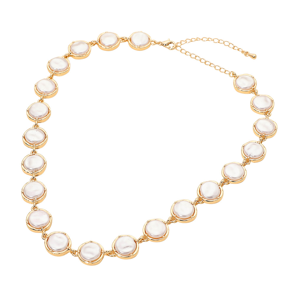 Details • Necklace Size : 14.5" + 3" L • Decor Size : 0.5" L • Elevate any outfit with this classic round link statement necklace, featuring evenly spaced accents in a clean, timeless silhouette. Designed with an adjustable length for flexible styling, it transitions effortlessly from everyday wear to special occasion looks. • Lead and Nickel Compliant