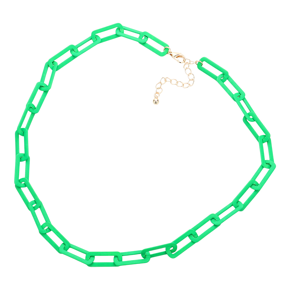 Colored Open Metal Rectangle Link Necklace