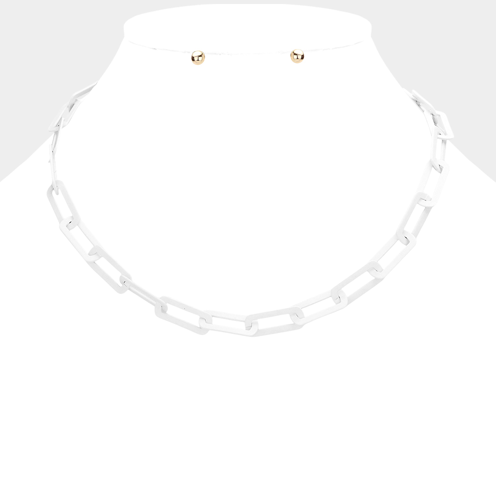 Colored Open Metal Rectangle Link Necklace