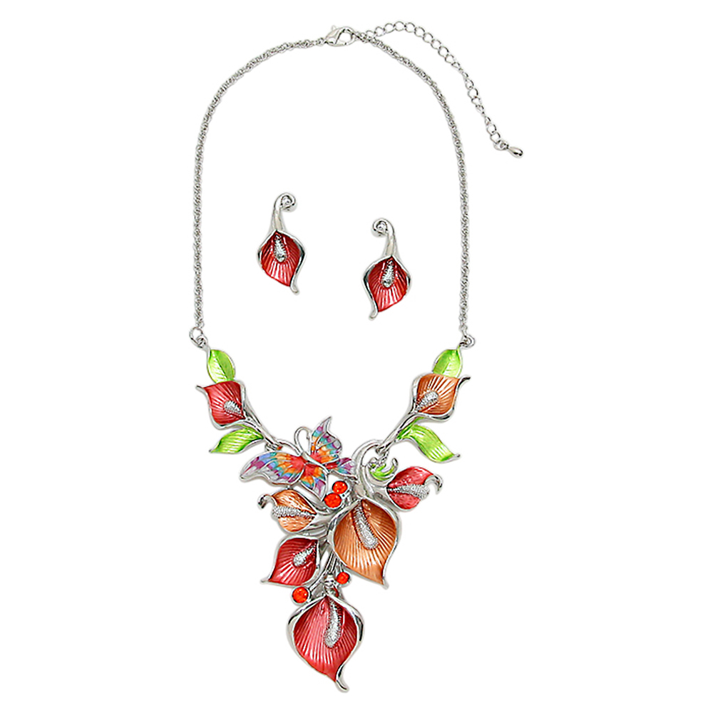 Metal Butterfly Stone Flower Cluster Dangle Earrings