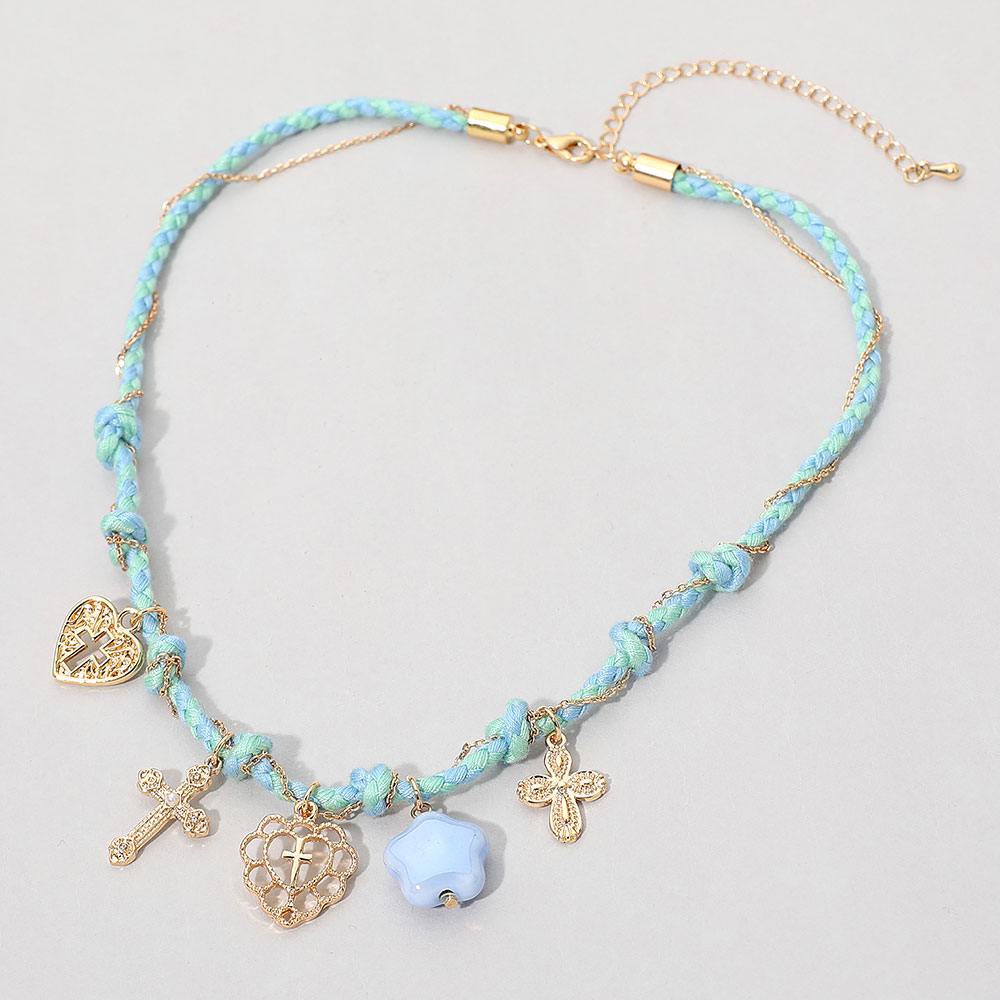 Details • Necklace Size : 16" + 3" L • Decor Size : 0.9" L • This necklace features a braided design highlighted with multiple hanging charms that add texture and movement. Built with an adjustable chain for a comfortable fit, it layers effortlessly with other pieces or stands alone as a statement accessory, making it a thoughtful gift or daily wear favorite. • Lead and Nickel Compliant