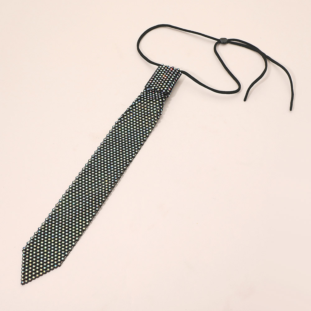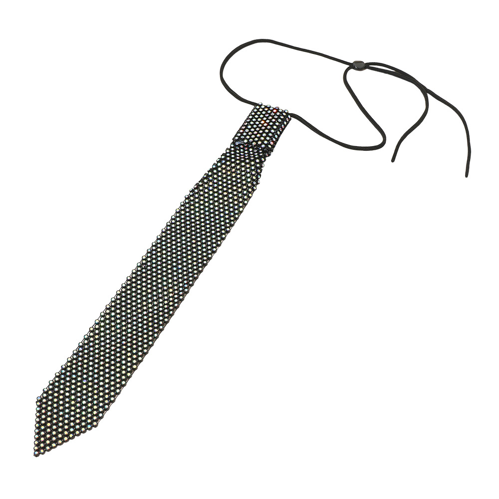 • Add a bold sparkle to your outfit with this crystal-embellished tie necklace featuring an adjustable strap for a perfect fit. Its sleek design and shimmering detail make it ideal for parties, concerts, or nights out, giving any look a chic and edgy finishing touch.