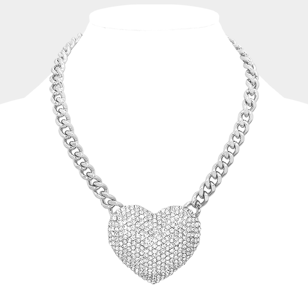 Heart Stone Cluster Link Dropdown Evening Earrings