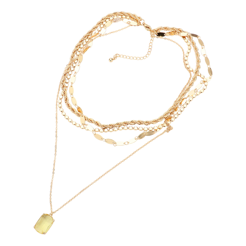 Teardrop Stone Pointed Rhinestone Paved Necklace