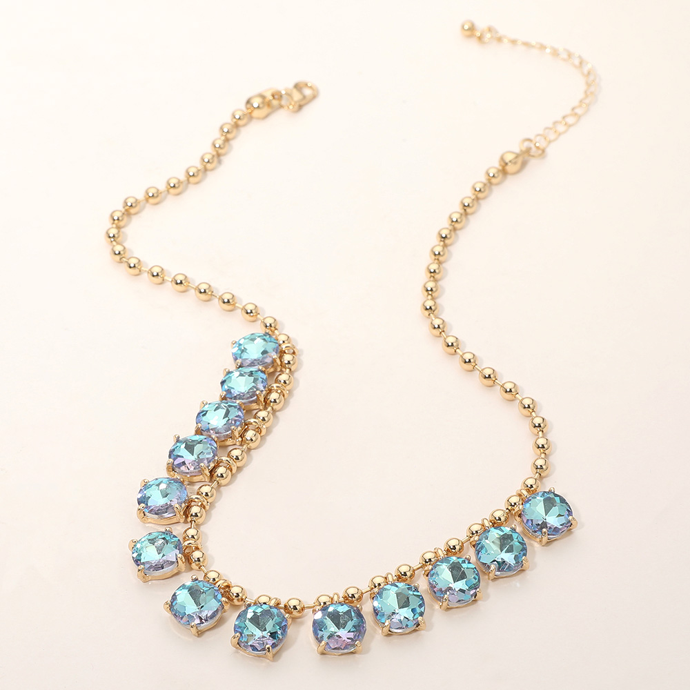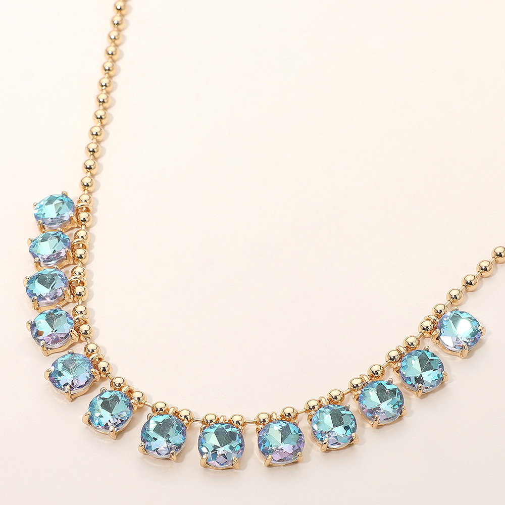 • Elegant necklace featuring a delicate beaded chain accented with faceted round stones arranged along the neckline. Designed to add refined sparkle and balanced detail, this versatile piece suits everyday wear, special occasions, gifting, and boutique collections with a timeless, polished appeal.