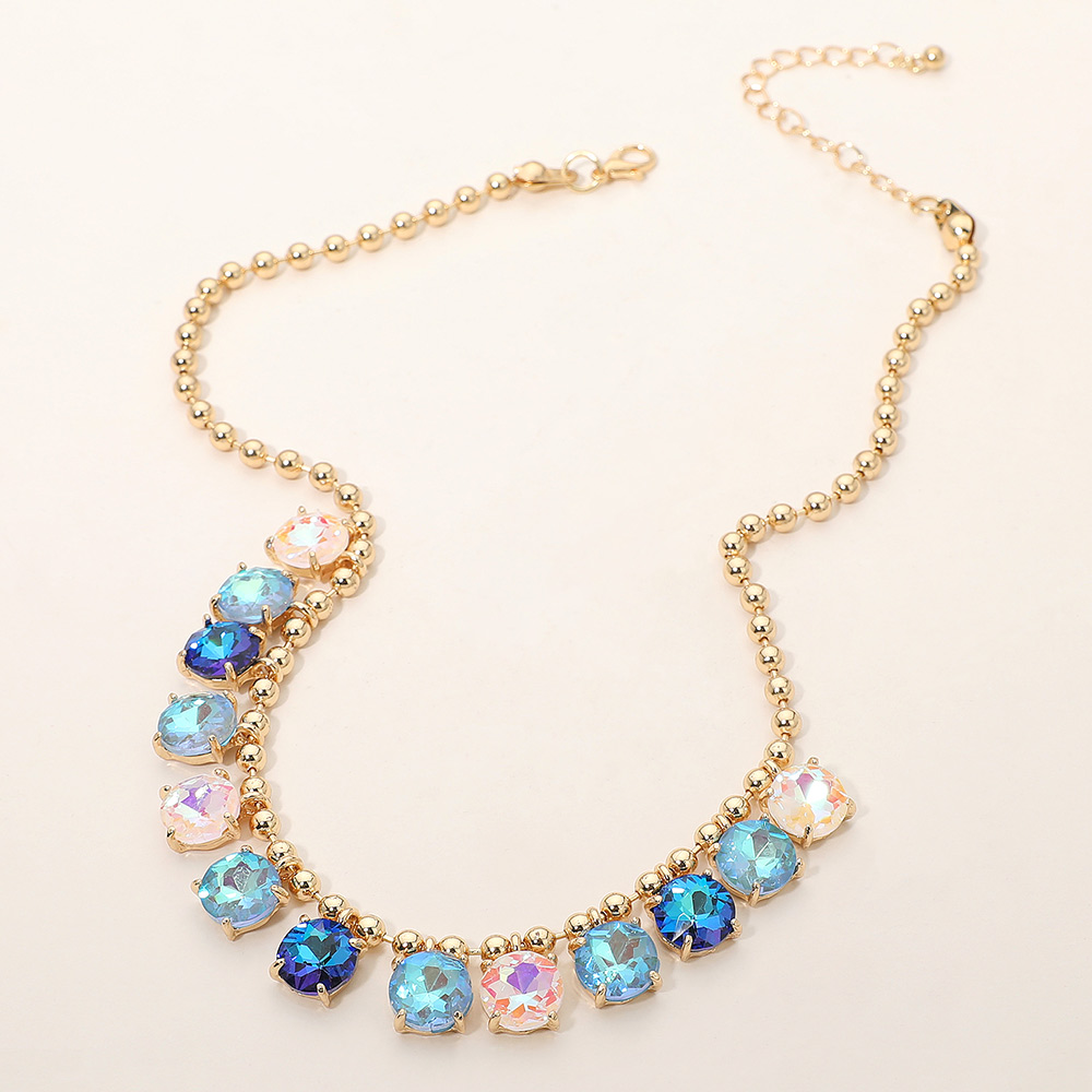 • Elegant necklace featuring a delicate beaded chain accented with faceted round stones arranged along the neckline. Designed to add refined sparkle and balanced detail, this versatile piece suits everyday wear, special occasions, gifting, and boutique collections with a timeless, polished appeal.