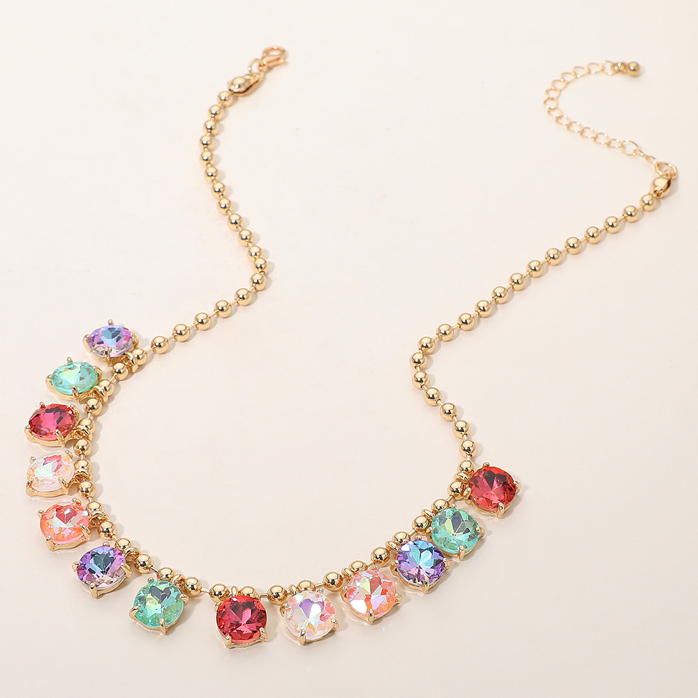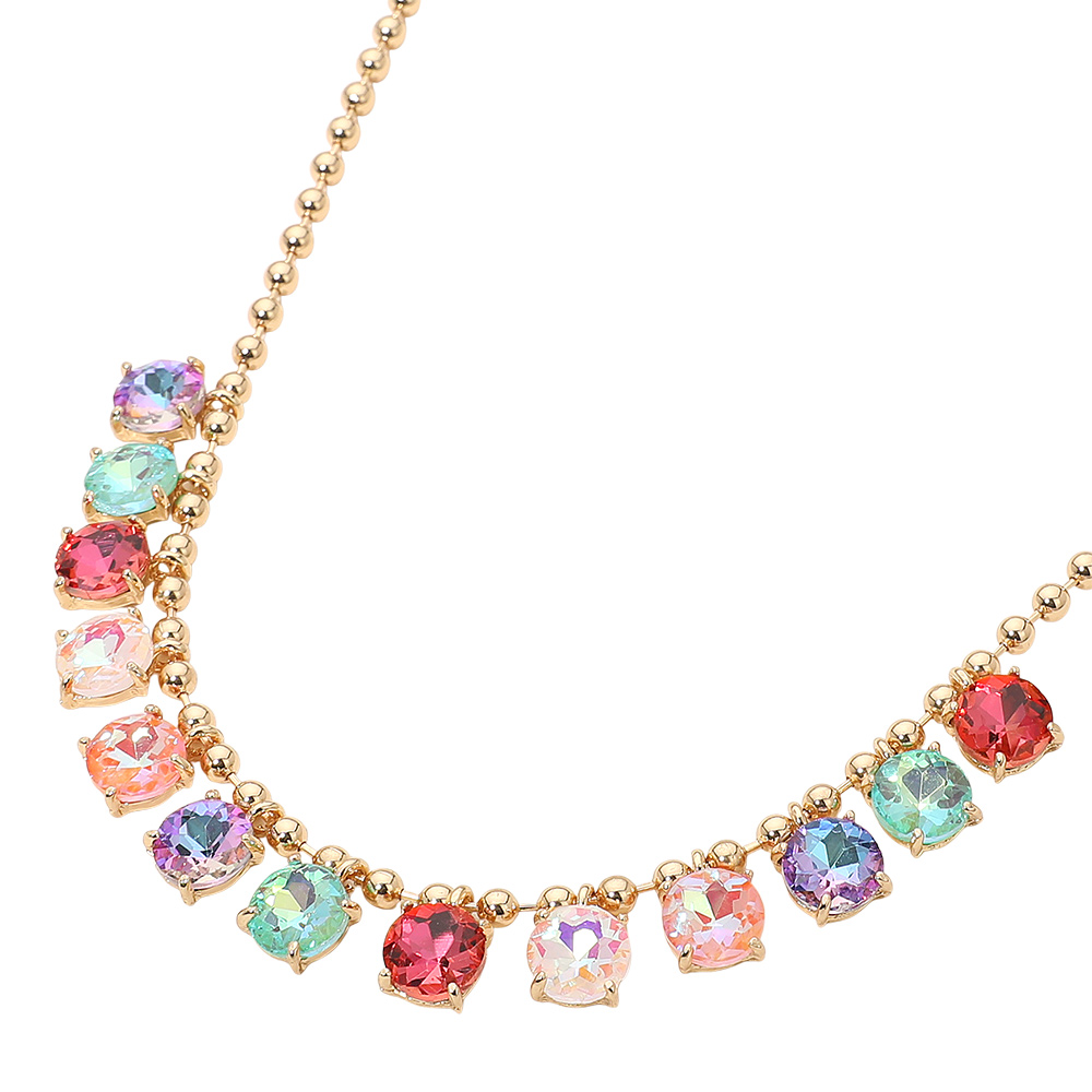 • Elegant necklace featuring a delicate beaded chain accented with faceted round stones arranged along the neckline. Designed to add refined sparkle and balanced detail, this versatile piece suits everyday wear, special occasions, gifting, and boutique collections with a timeless, polished appeal.