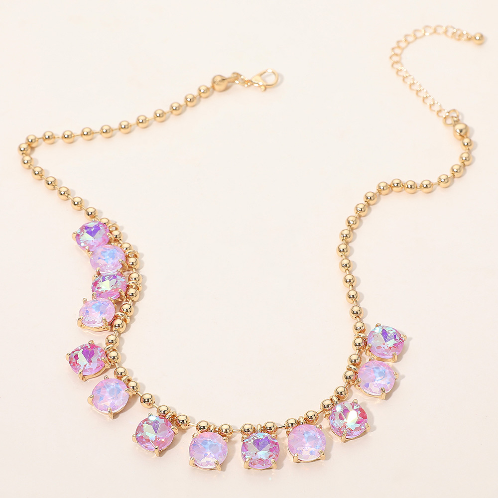 • Elegant necklace featuring a delicate beaded chain accented with faceted round stones arranged along the neckline. Designed to add refined sparkle and balanced detail, this versatile piece suits everyday wear, special occasions, gifting, and boutique collections with a timeless, polished appeal.