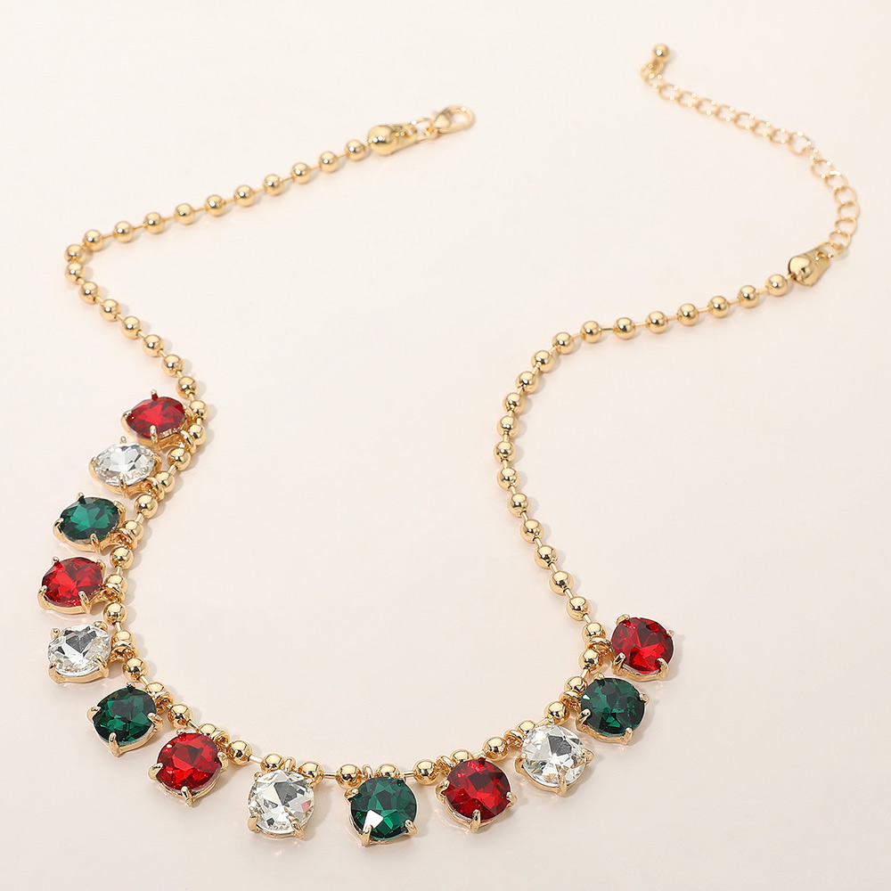 • Elegant necklace featuring a delicate beaded chain accented with faceted round stones arranged along the neckline. Designed to add refined sparkle and balanced detail, this versatile piece suits everyday wear, special occasions, gifting, and boutique collections with a timeless, polished appeal.