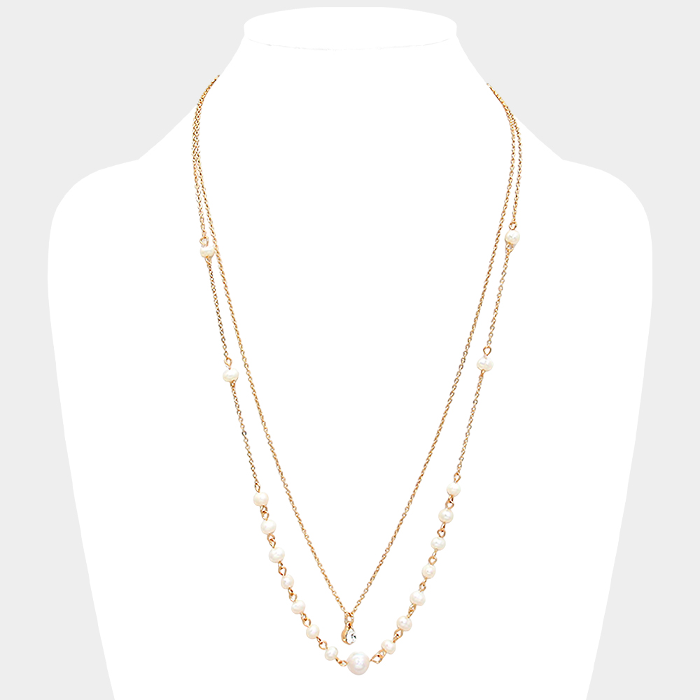 Marbled Round Shaped Beads Pearl Beaded Necklace