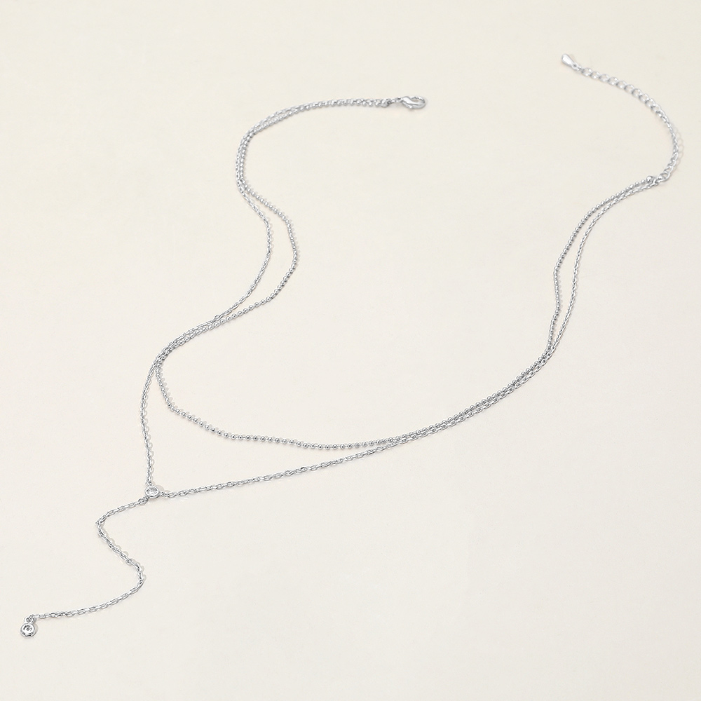 Dropped Round Stone Double Layered Y Necklace