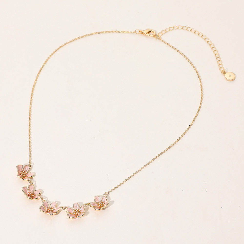 Details • Necklace Size : 16" + 3" L • Decor Size : 0.4" L • Elevate everyday style with the Floral Charm Station Necklace, featuring a series of delicate blossom accents set along a fine chain for graceful movement and subtle sparkle. Perfect for layering or wearing solo as a feminine statement piece. • Brass • Lead and Nickel Compliant