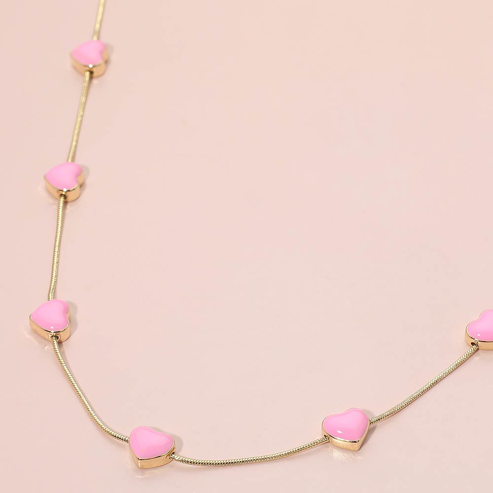 Enamel Heart Charm Station Necklace Enamel Heart Charm Station Necklace Enamel Heart Charm Station Necklace