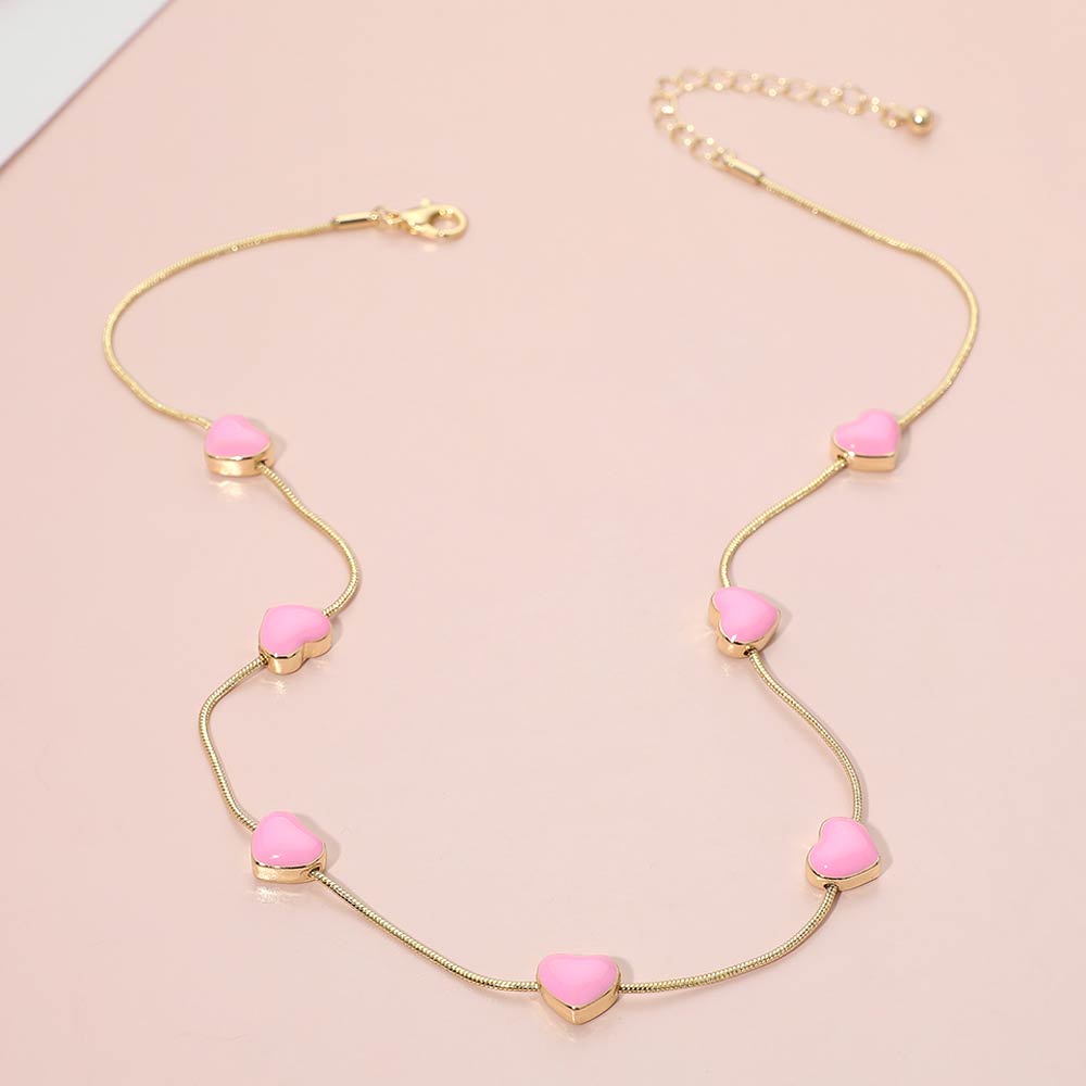 Enamel Heart Charm Station Necklace