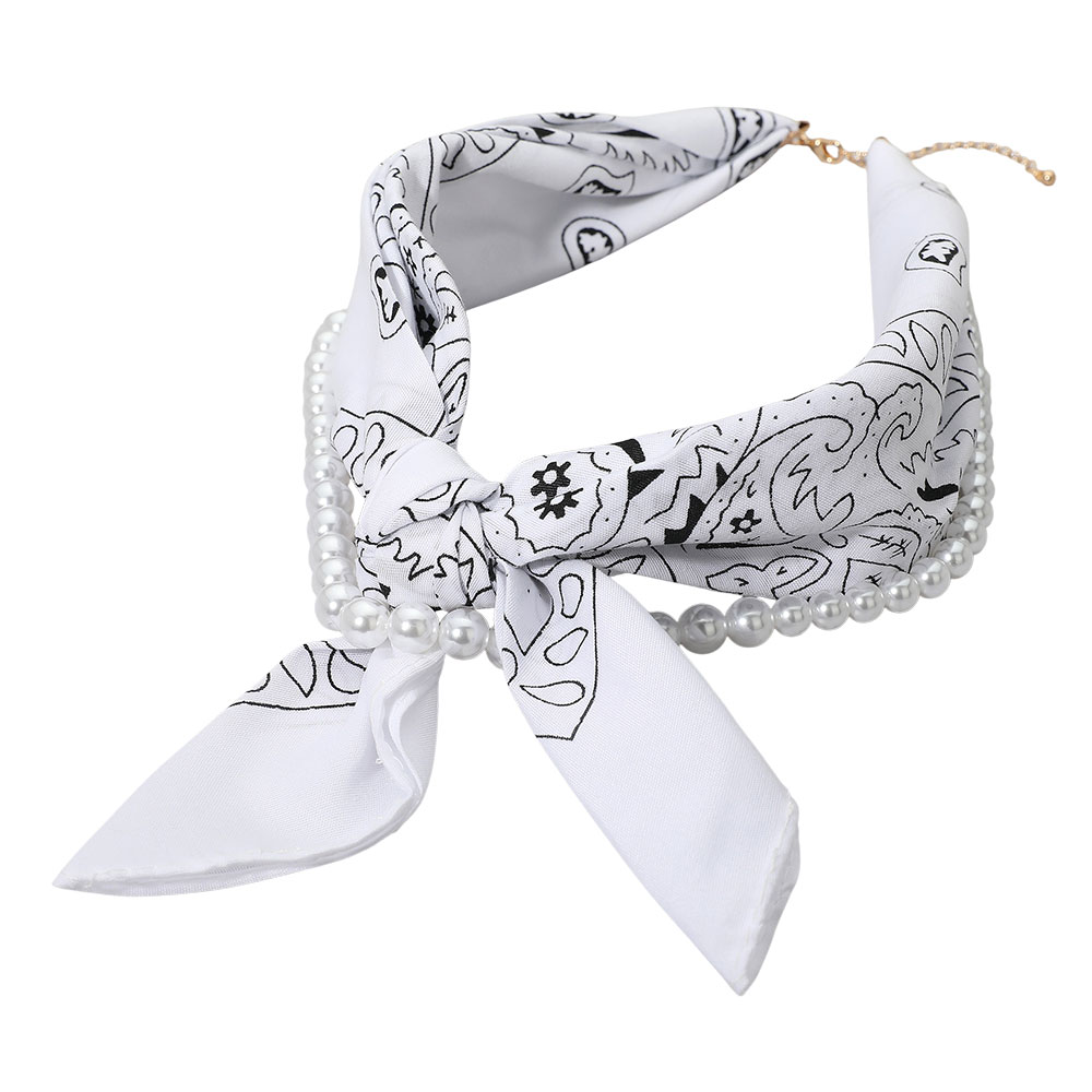 Details • Necklace Size : 20" + 3" L • Decor Size : 4" L • Print may vary • Turn heads with this pearl and scarf statement necklace, blending classic elegance with bold style. The chic combination of lustrous pearls and a patterned scarf creates a versatile accessory that elevates any outfit, perfect for casual charm or standout sophistication. • Lead and Nickel Compliant