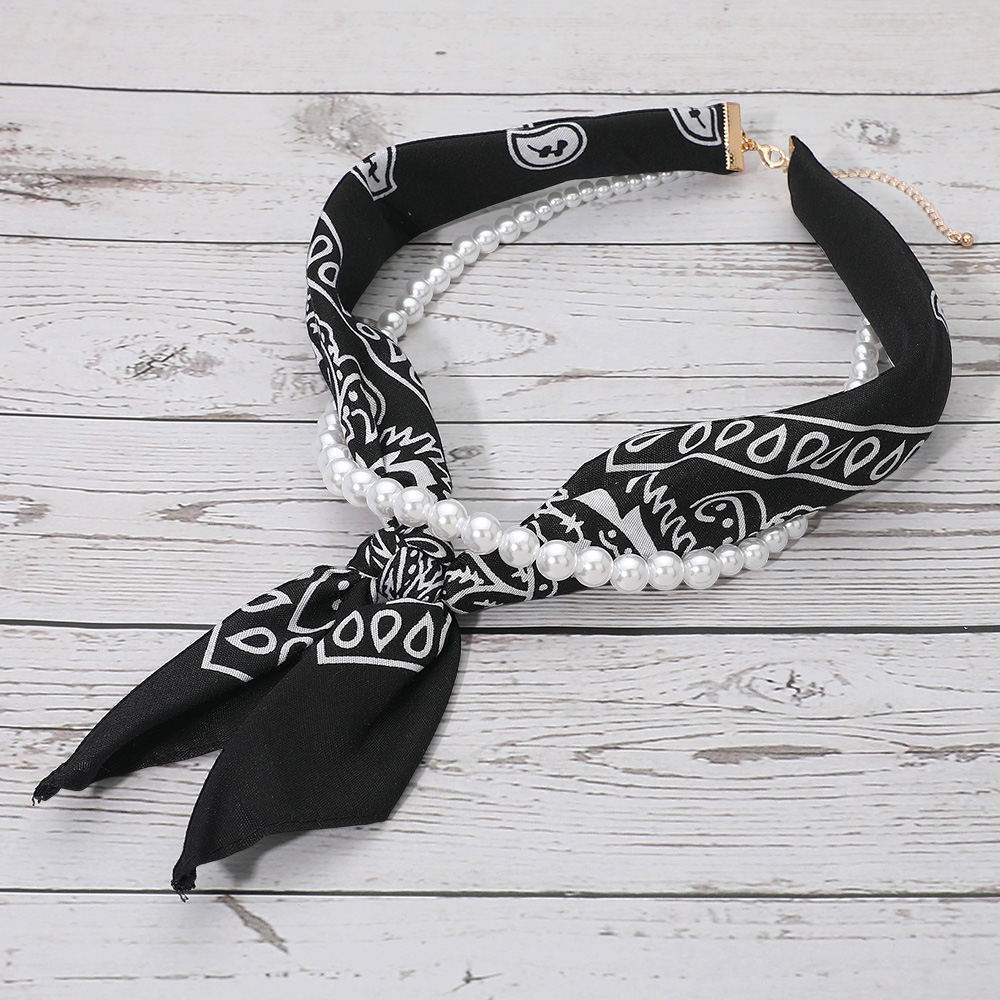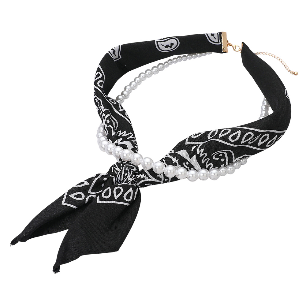 Fabric Bandana Scarf Pearl Layered Necklace