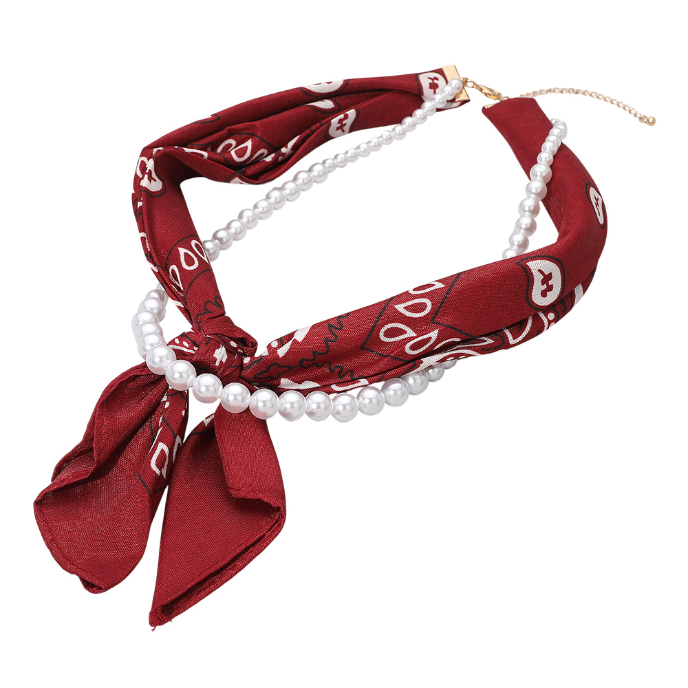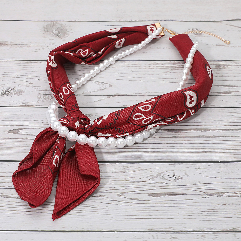 Fabric Bandana Scarf Pearl Layered Necklace Fabric Bandana Scarf Pearl Layered Necklace