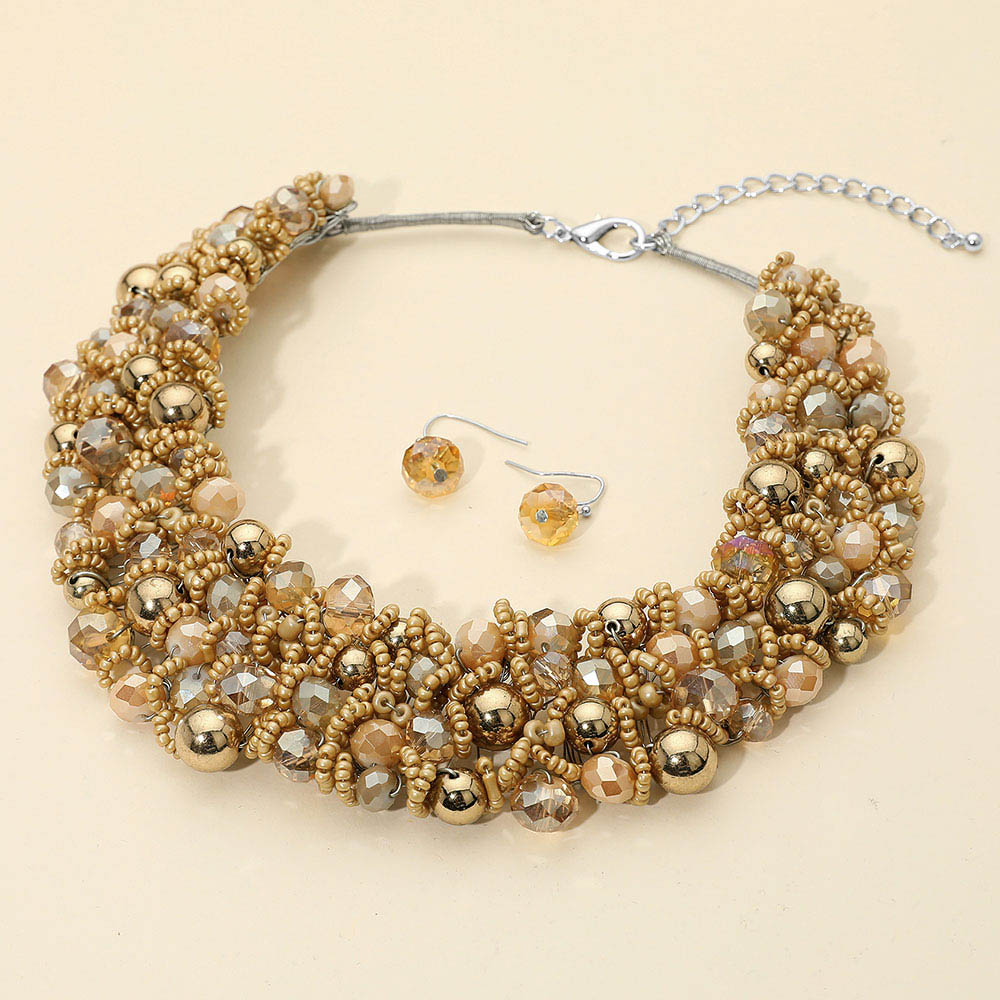 • Glamorous necklace and earring set featuring clustered beads arranged in a bold statement design, perfect for elevating special occasion outfits. This coordinated set adds sparkle and dimension, making it ideal for events, parties, or elegant evening looks.