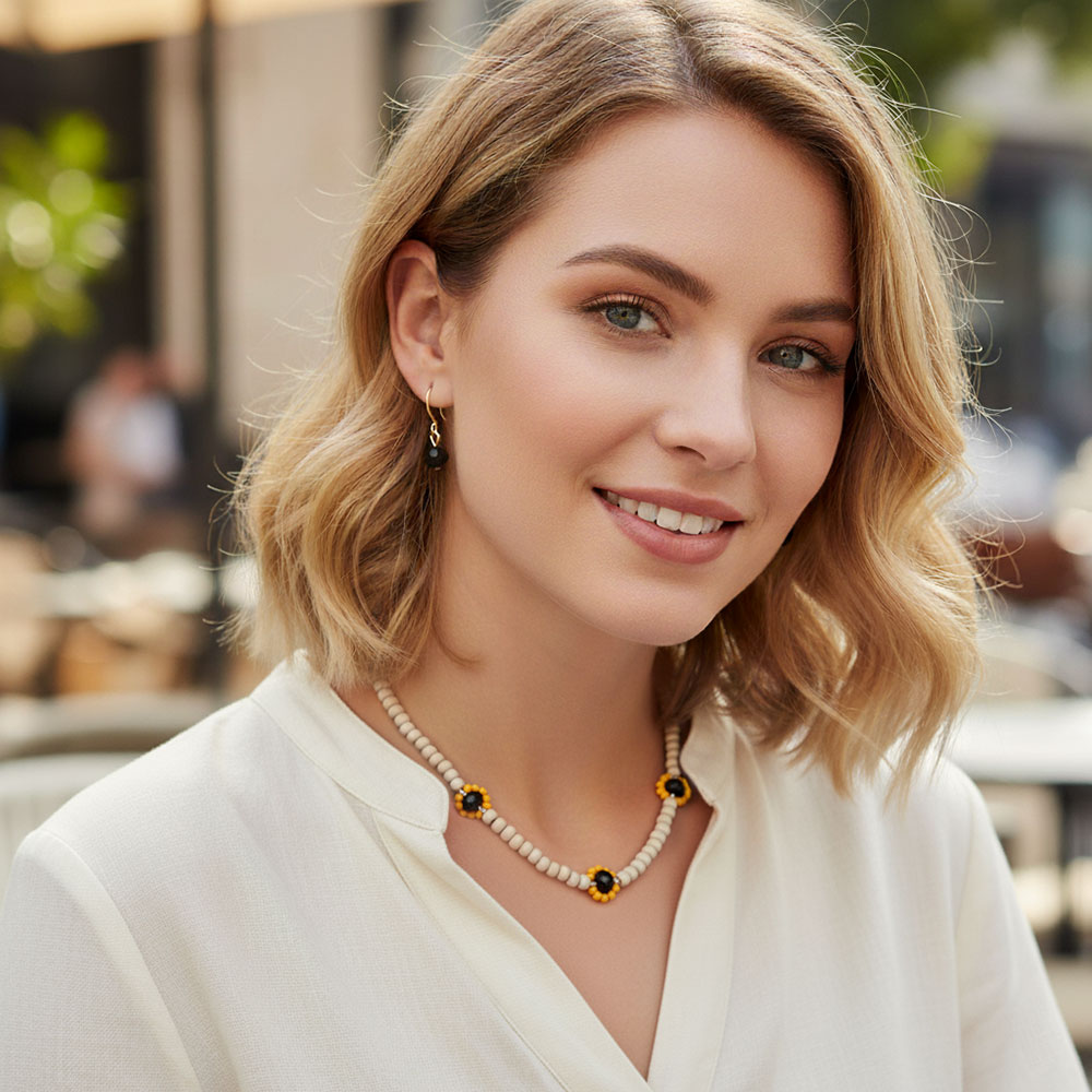 • Stylish beaded necklace and earring set designed with contrasting accent beads for a modern, minimalist look. Perfect for everyday wear or casual occasions, this elegant jewelry set adds a subtle pop of style and sophistication to any outfit, making it a versatile accessory choice.