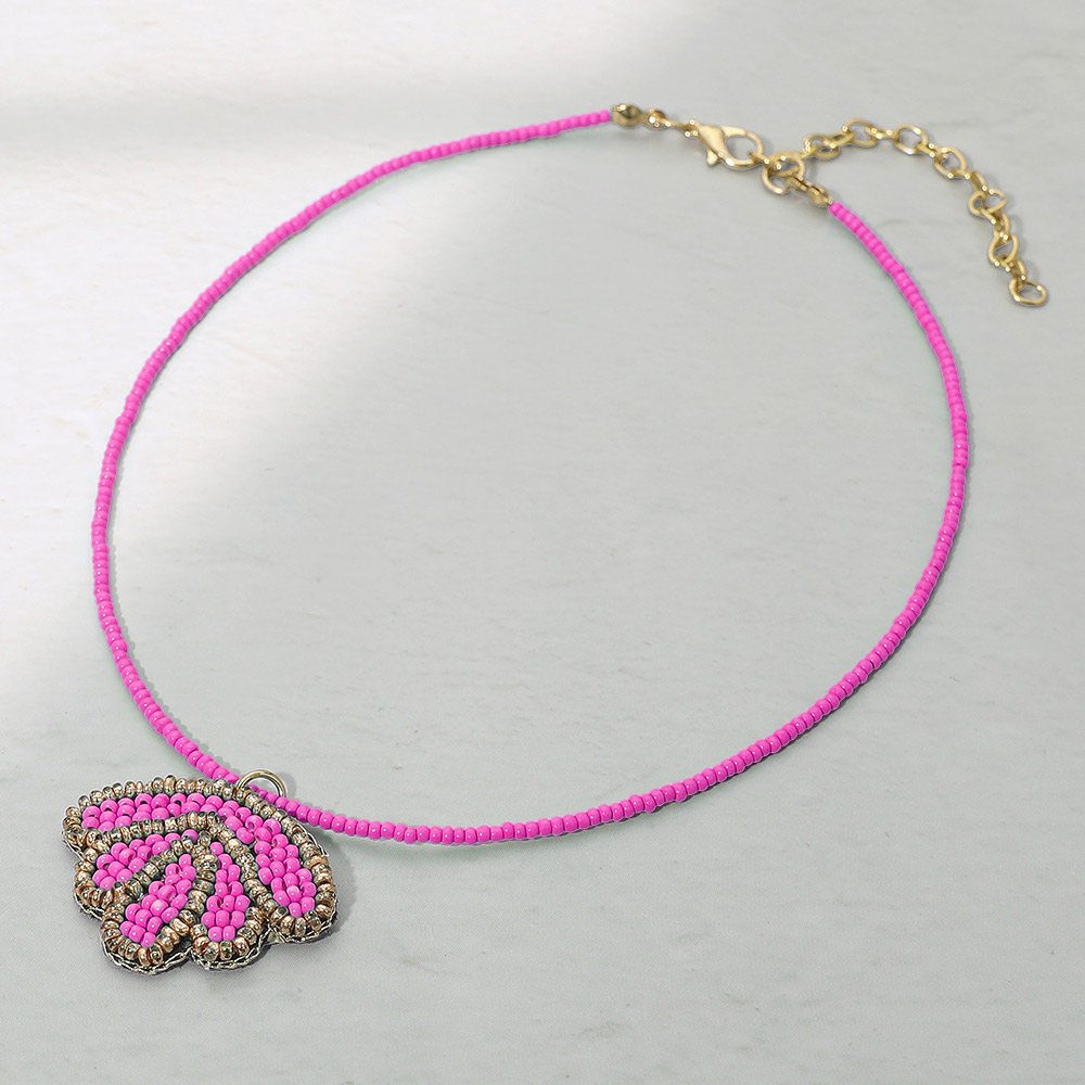 Details • Necklace Size : 14" + 3" L • Pendant Size : 1.3" X 1" • Elegant necklace featuring a handcrafted beaded leaf pendant on a fine beaded chain. Adds a touch of bohemian charm and natural elegance to casual or dressy looks. Lightweight and stylish, this piece is perfect for layering or wearing as a statement accent. • Lead and Nickel Compliant • Made In India