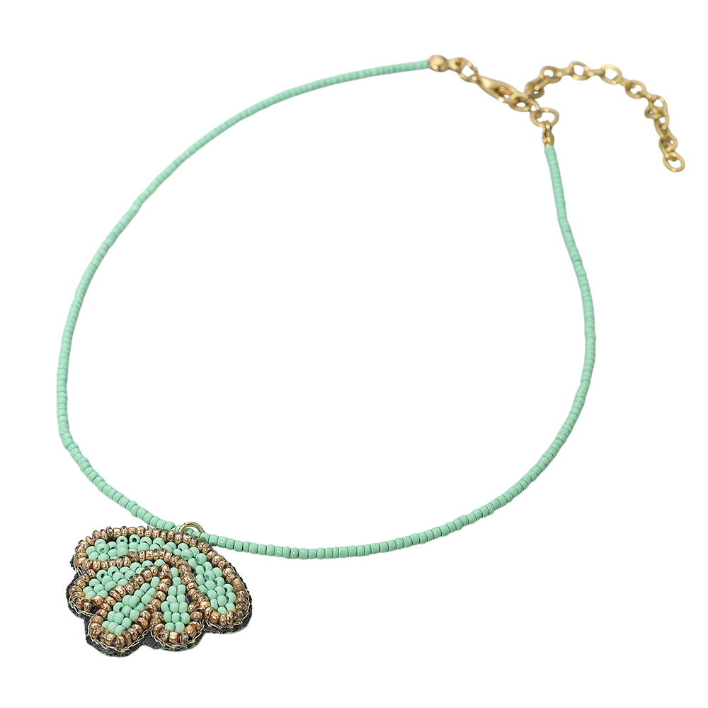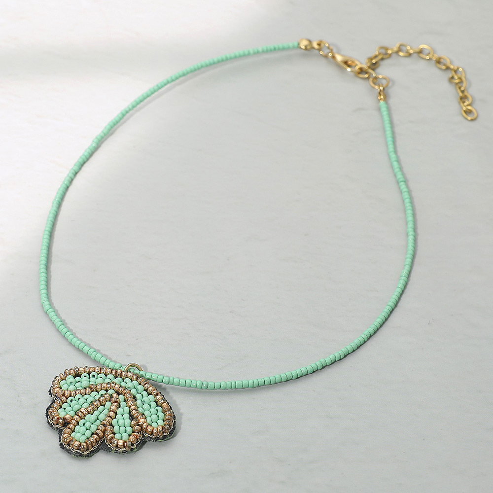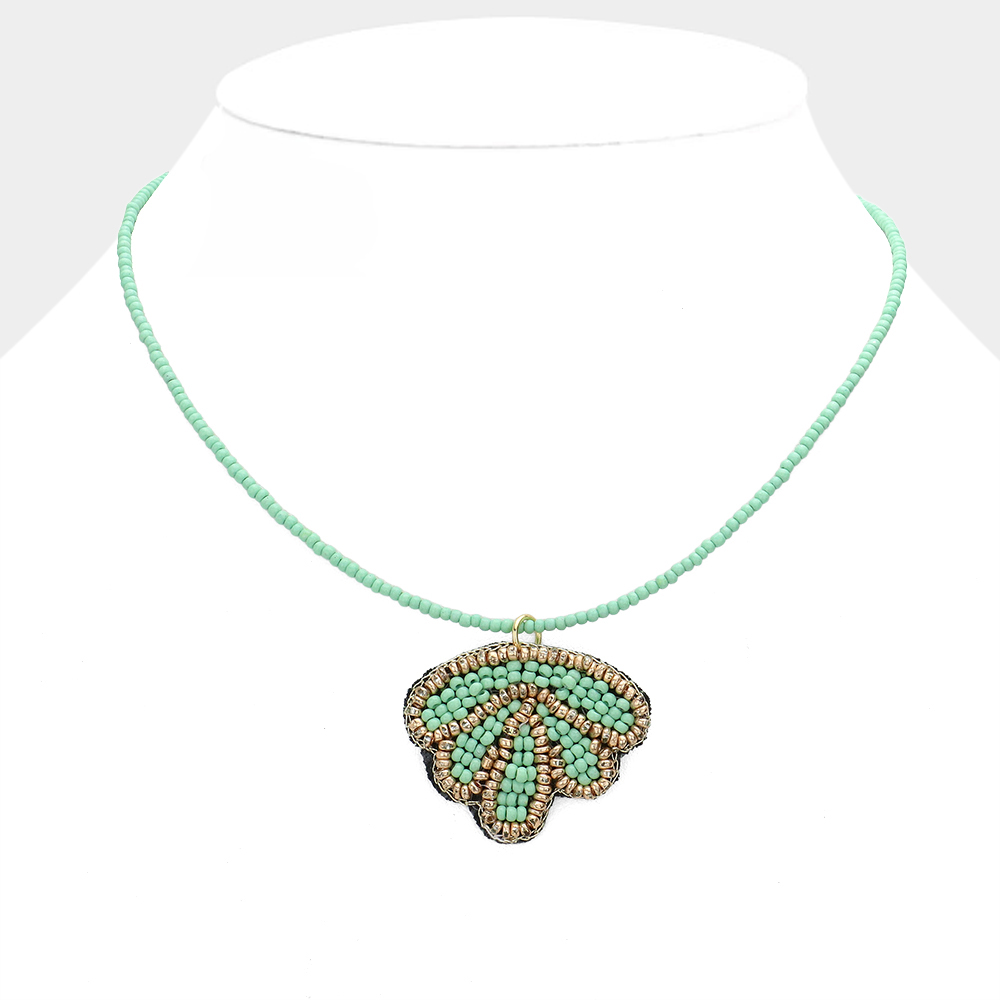 Felt Back Seed Beaded Shell Pendant Necklace Felt Back Seed Beaded Shell Pendant Necklace Felt Back Seed Beaded Shell Pendant Necklace