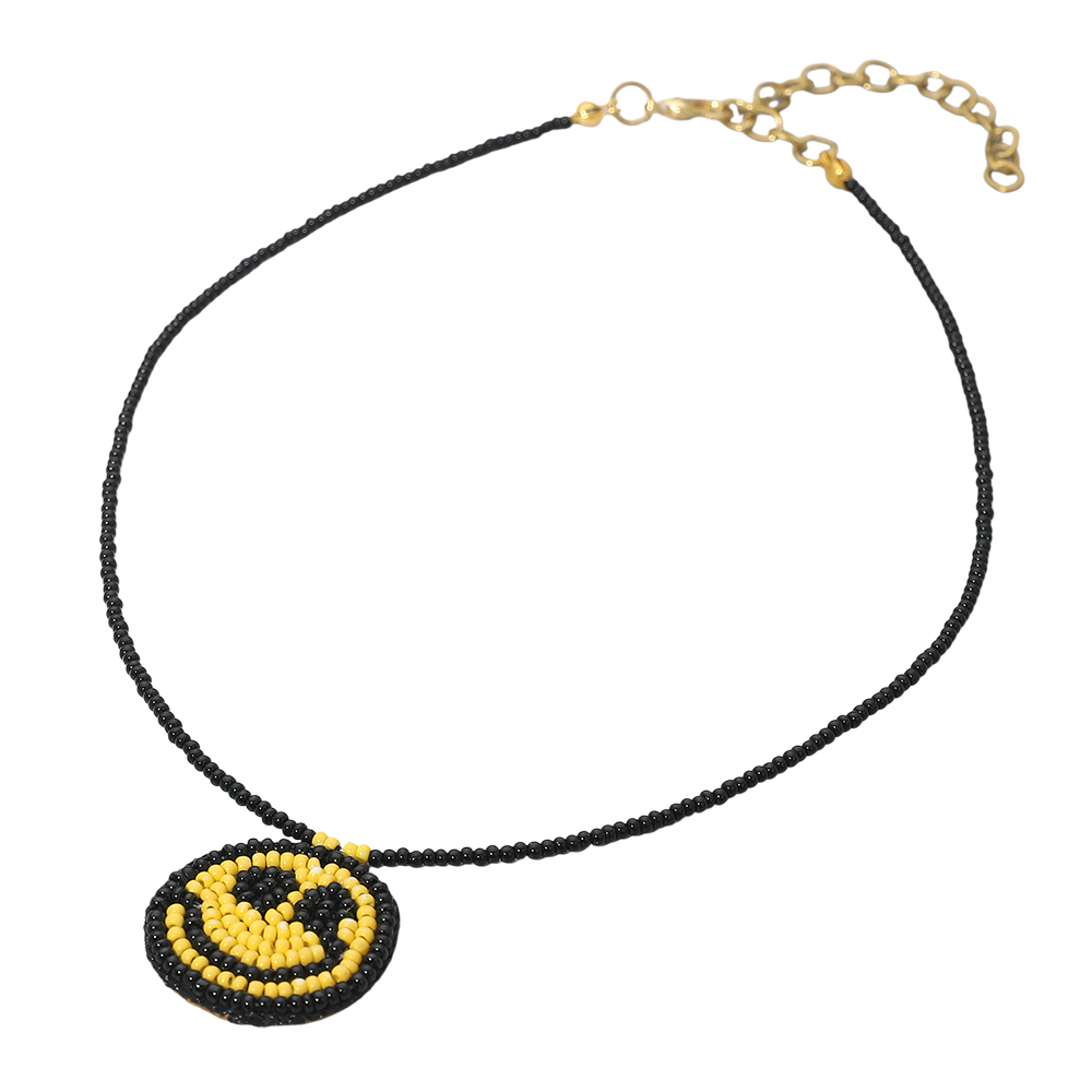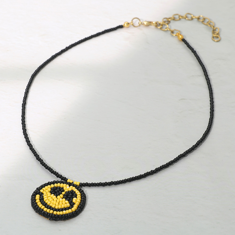 • Playful smiley face pendant necklace designed with tiny seed beads for a fun and uplifting look. Perfect for adding a touch of positivity to casual outfits, this lightweight piece brings a cheerful and trendy vibe to everyday wear or layered jewelry styles.