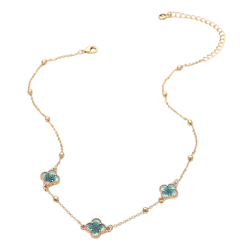 Floral Encased Quatrefoil Charm Station Necklace Floral Encased Quatrefoil Charm Station Necklace Floral Encased Quatrefoil Charm Station Necklace