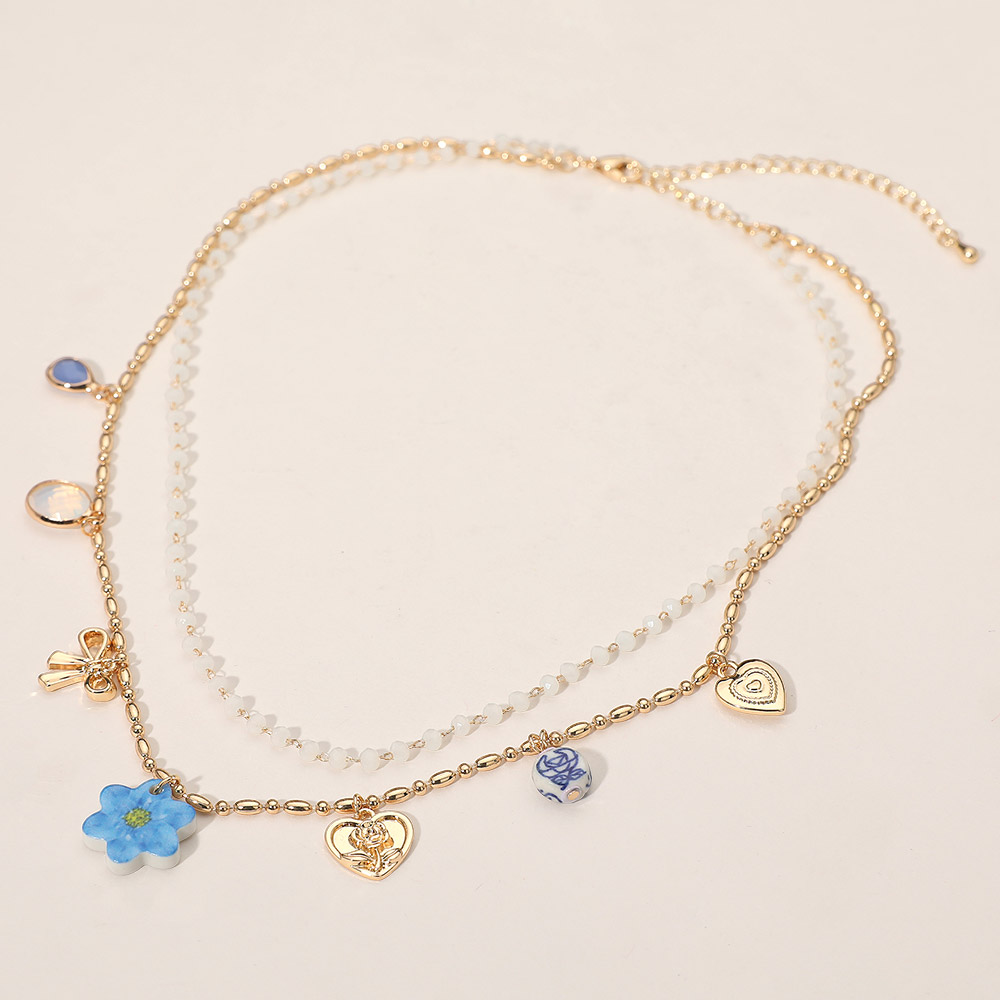 Flower Heart Charm Station Double Layered Necklace Flower Heart Charm Station Double Layered Necklace Flower Heart Charm Station Double Layered Necklace