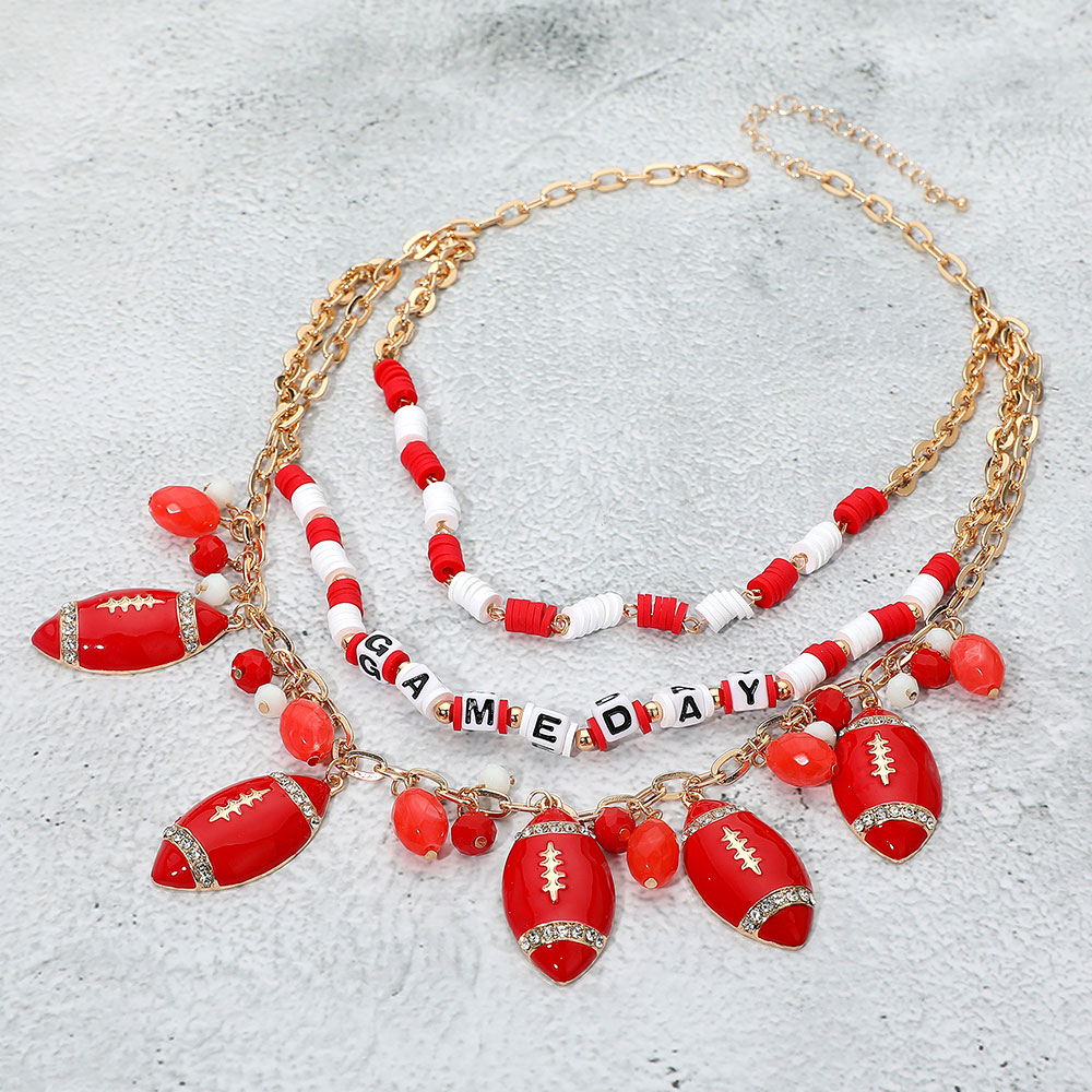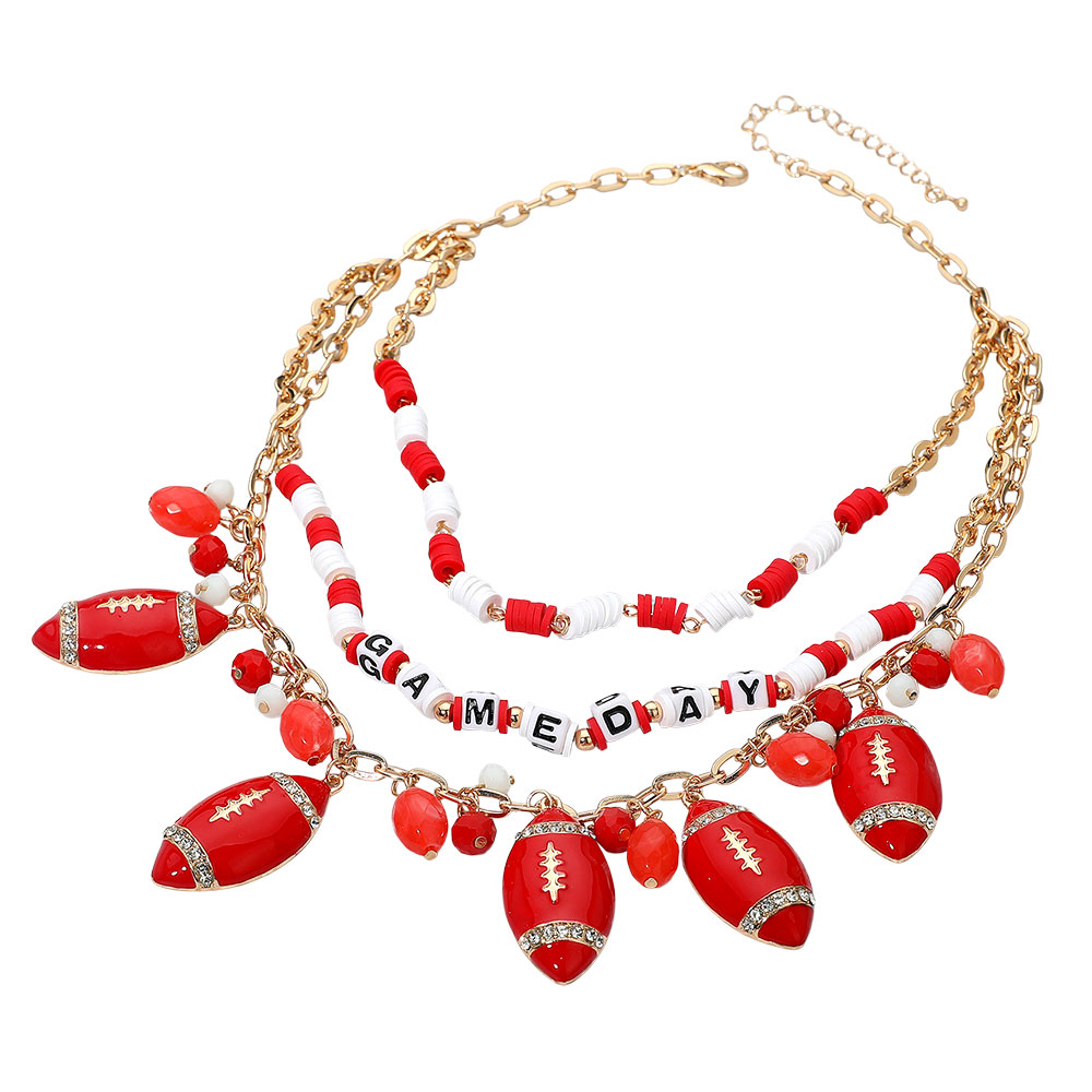 Football Charm Embellished GAME DAY Heishi Beaded Layered Necklace Football Charm Embellished GAME DAY Heishi Beaded Layered Necklace Football Charm Embellished GAME DAY Heishi Beaded Layered Necklace