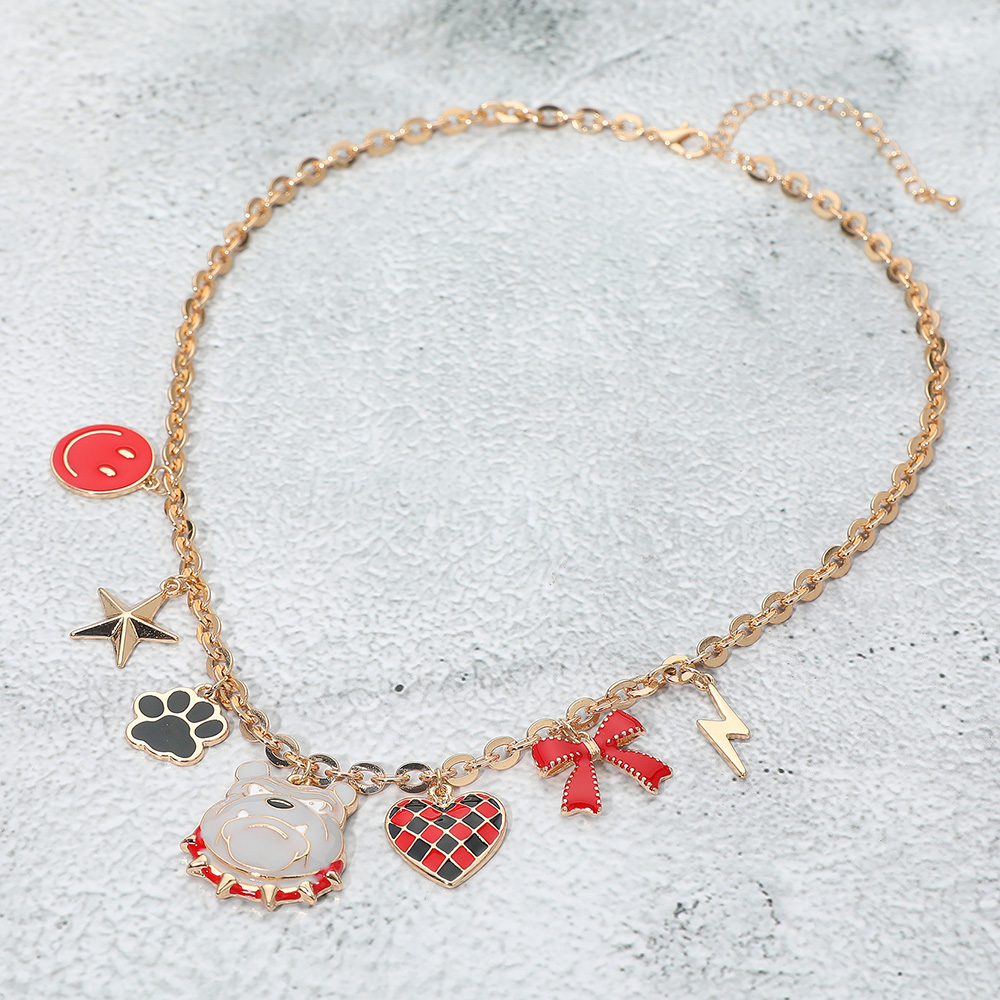 Gameday Animal Mascot Bow Star Heart Smile Face Bolt Charm Station Necklace